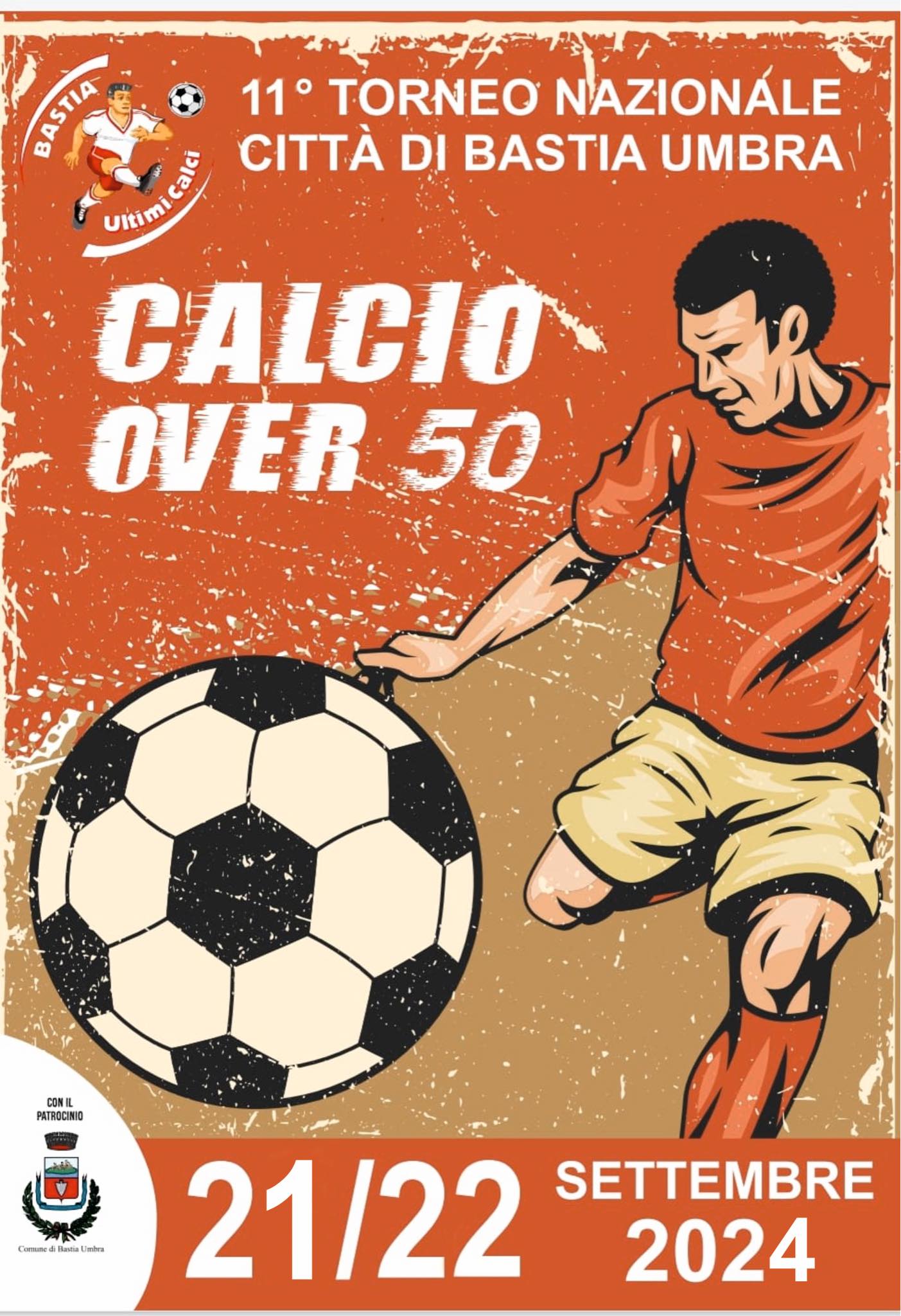 Anche quest’anno l’ A.S.D. Ultimi Calci Bastia Umbra organizza il Torneo Nazionale di calcio Over 50 “Città di Bastia Umbra” che è giunto alla 11° edizione.