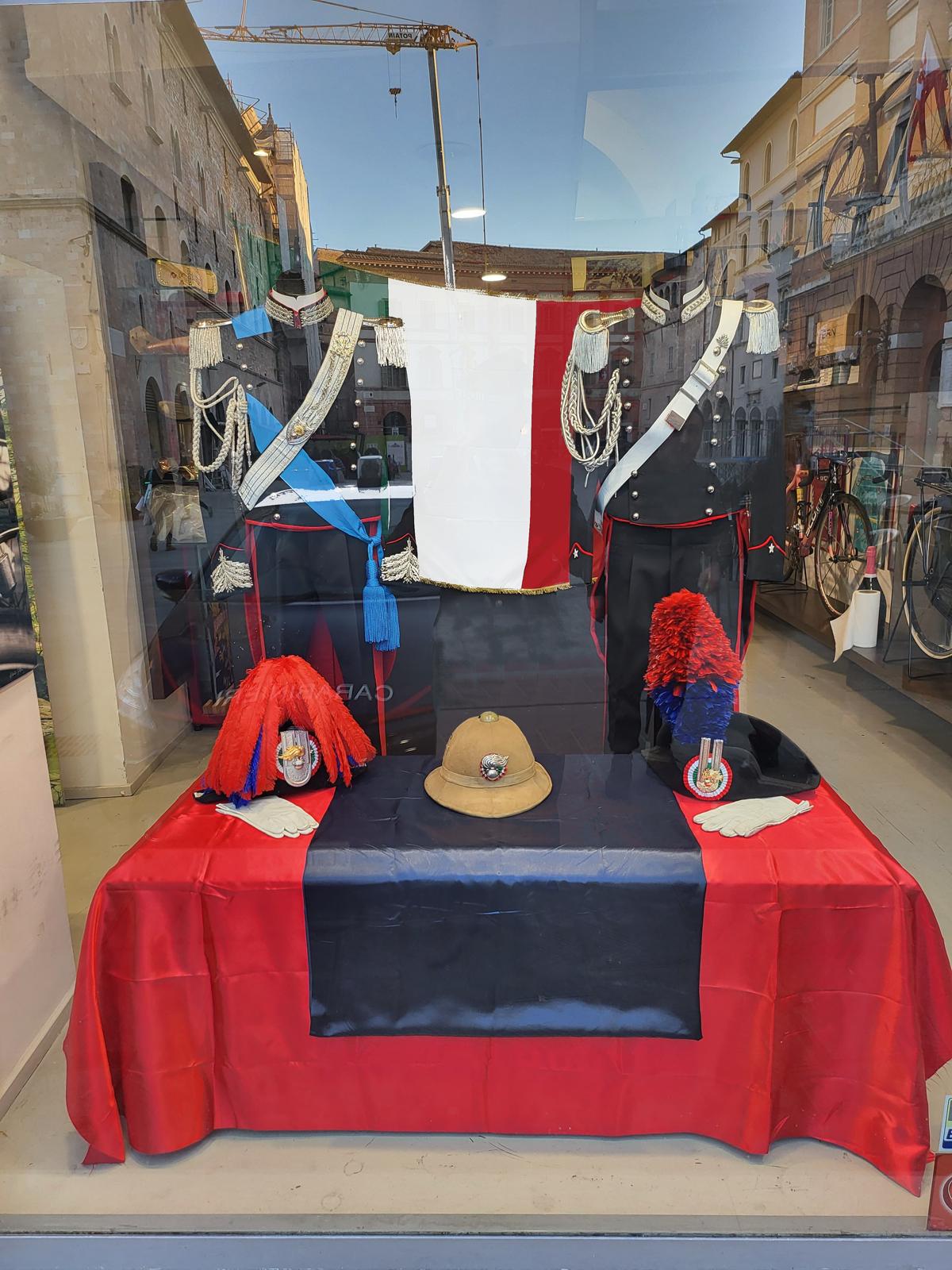 Nel medesimo contesto, a Città di Castello, Foligno, Perugia, Spoleto e Todi sono state allestite vetrine commemorative, in cui poter ammirare uniformi operative e storiche, oltre che una selezione di equipaggiamento e materiale d’epoca, quale ulteriore momento integrante le celebrazioni tenutesi, al fine di avvicinare la cittadinanza alla storia e all’evoluzione dell’Arma, onorando il contributo dei Carabinieri alla sicurezza e alla difesa della collettività.