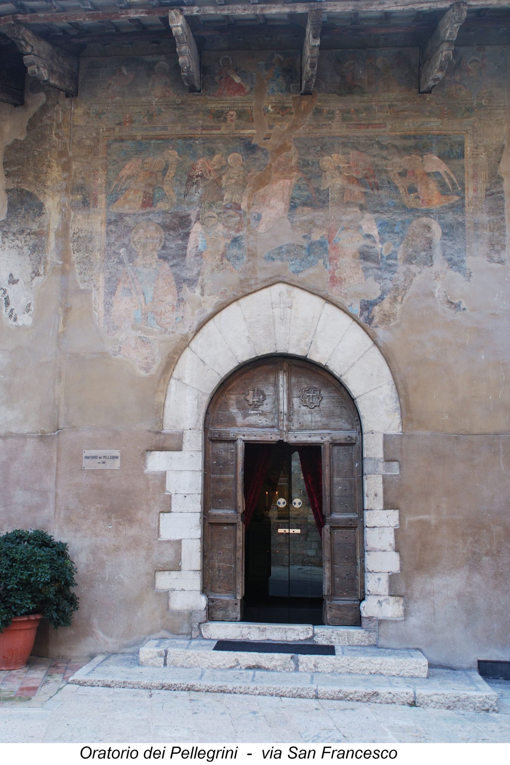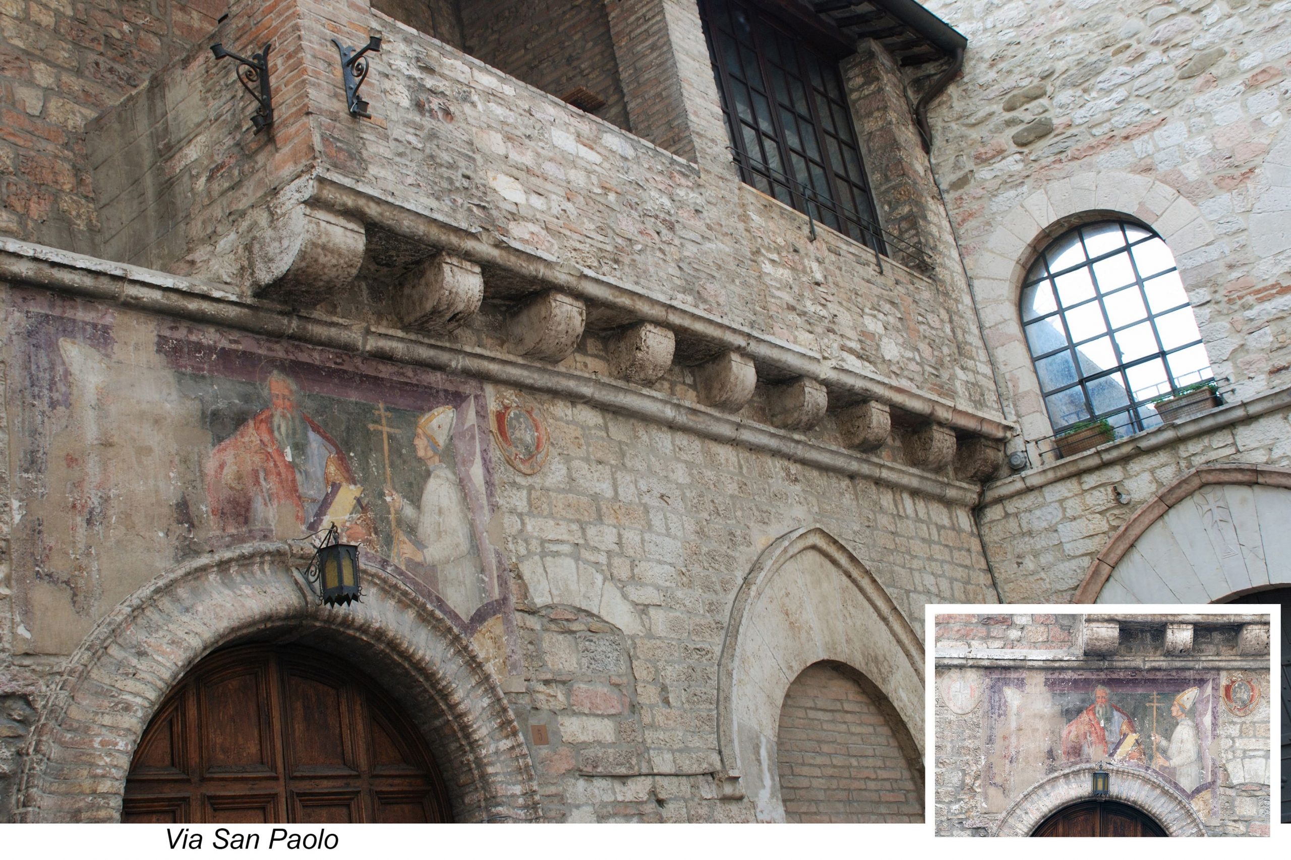Tra queste, in particolare, l’affresco esterno all’Oratorio dei Pellegrini – via San Francesco, affresco esterno chiesa di San Paolo – via San Paolo, l’edicola in via frate Elia, l’edicola in via Giorgetti, l’edicola di porta San Giacomo, gli affreschi all’ingresso dell’Eremo delle Carceri, l’edicola in via fosso delle Carceri ed altre ancora sparse anche nelle frazioni di Assisi.