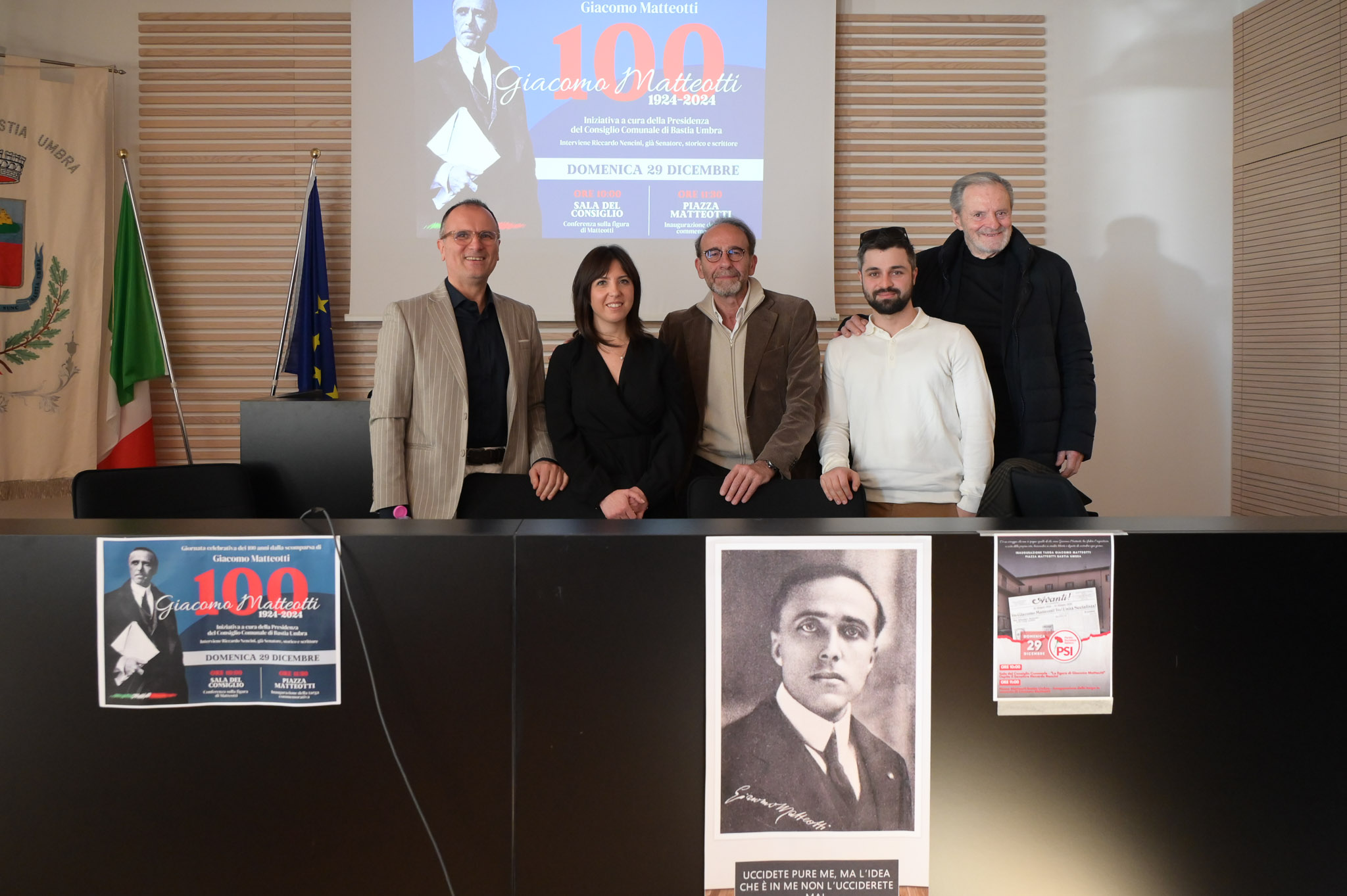 Bastia Umbra, 31 dicembre 2024 – Nella mattina di Domenica 29 Dicembre 2024, la Città di Bastia rende onore e celebra la figura di Giacomo Matteotti, deputato e Segretario del Partito Socialista Unitario, rapito e barbaramente ucciso dai fascisti il 10 Giugno 1924, inaugurando la targa dedicata alla memoria di un uomo che ha scelto di sacrificare la propria vita per gli ideali di libertà e democrazia in cui credeva fermamente.