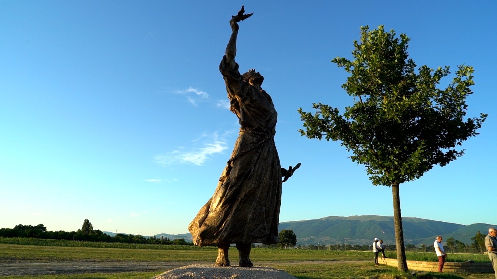(AVInews) – Cannara, 13 giu. – A Piandarca è stato compiuto il primo passo verso la realizzazione di un ‘santuario a cielo aperto’ con l’installazione e la scopertura, domenica 12 giugno, della statua bronzea di San Francesco che predica agli uccelli, celebre episodio che, secondo la tradizione, è avvenuto proprio in quel sito. Un progetto fortemente voluto dal Comitato Piandarca e sostenuto dal Comune di Cannara per valorizzare un luogo simbolico. A realizzare l’opera l’artista pavese Antonio De Paoli, vincitore del concorso internazionale del Santuario all’aperto, presente alla scopertura della statua insieme a Fabrizio Gareggia e Stefania Proietti, rispettivamente sindaci di Cannara e Assisi, Donatella Tesei, presidente della Regione Umbria, Marco Squarta, presidente dell’Assemblea legislativa dell’Umbria, don Maurizio Saba parroco di Cannara e delegato del vescovo, padre Rafael Normando, delegato del Sacro Convento di Assisi, Attilio Galimberti, delegato del ministro generale dell’Ordine francescano secolare Tibor Kauser, e Ottaviano Turrioni, presidente del Comitato Piandarca.