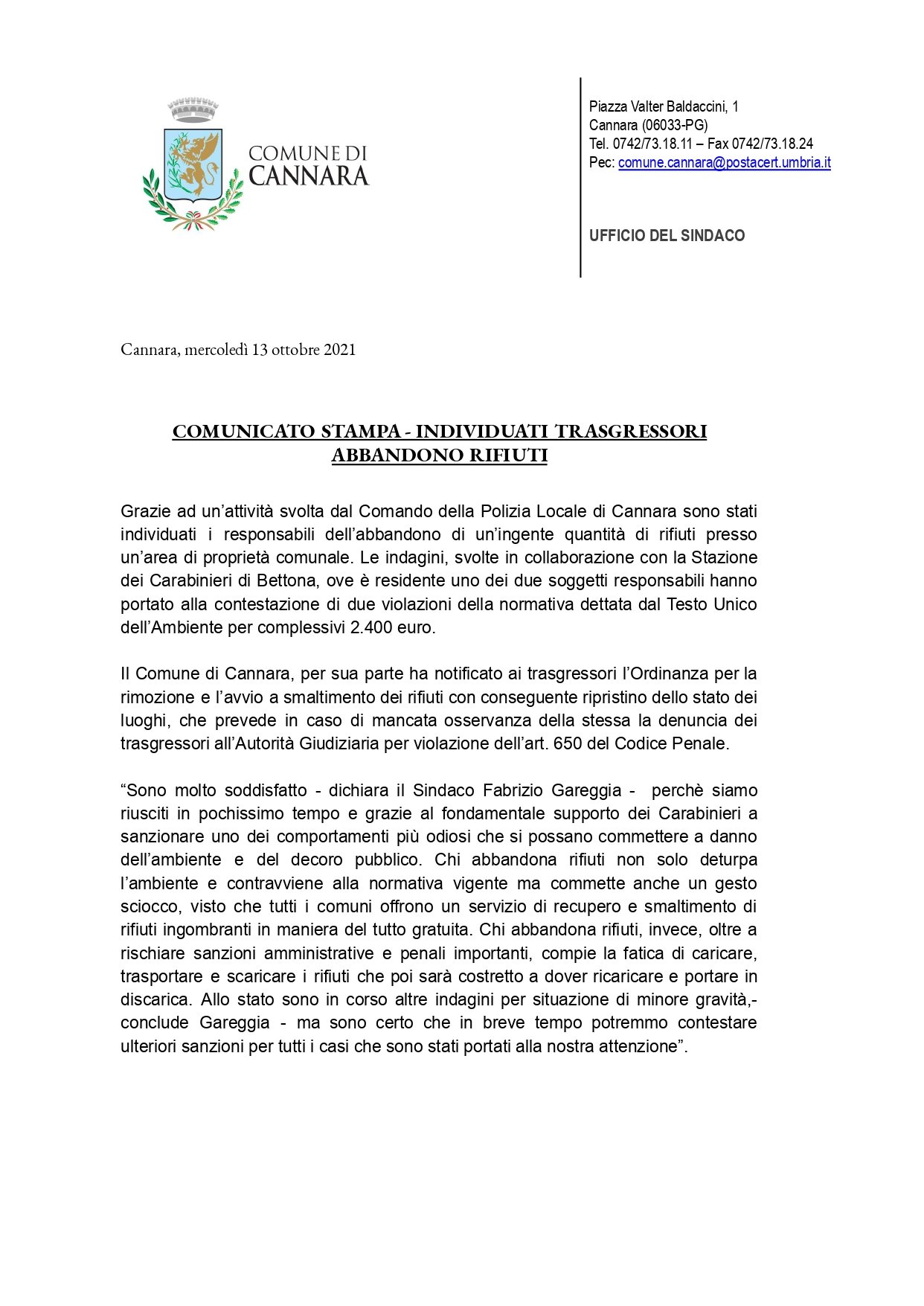 Abbandono di rifiuti a Cannara – individuati i trasgressori.