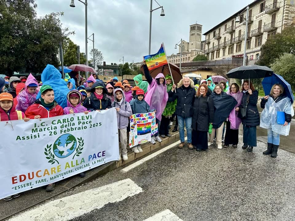 Ai trecento marciatori è giunto anche un messaggio di Maria Rodrigues de Oliveira, neo eletto sindaco del Consiglio Comunale dei Ragazzi di Assisi, organo partecipativo dei giovani che frequentano le scuole primarie e secondarie della città, finalizzato a favorirne la presenza nella vita pubblica locale. “Quando pensiamo alla pace – ha scritto in una lettera di saluto – spesso immaginiamo grandi leader o eventi internazionali, ma in realtà la pace inizia in ognuno di noi già da quando siamo bambini. Costruire la pace significa infatti imparare a rispettare gli altri, a risolvere i conflitti con gentilezza e a scegliere ogni giorno di essere più comprensivi”.