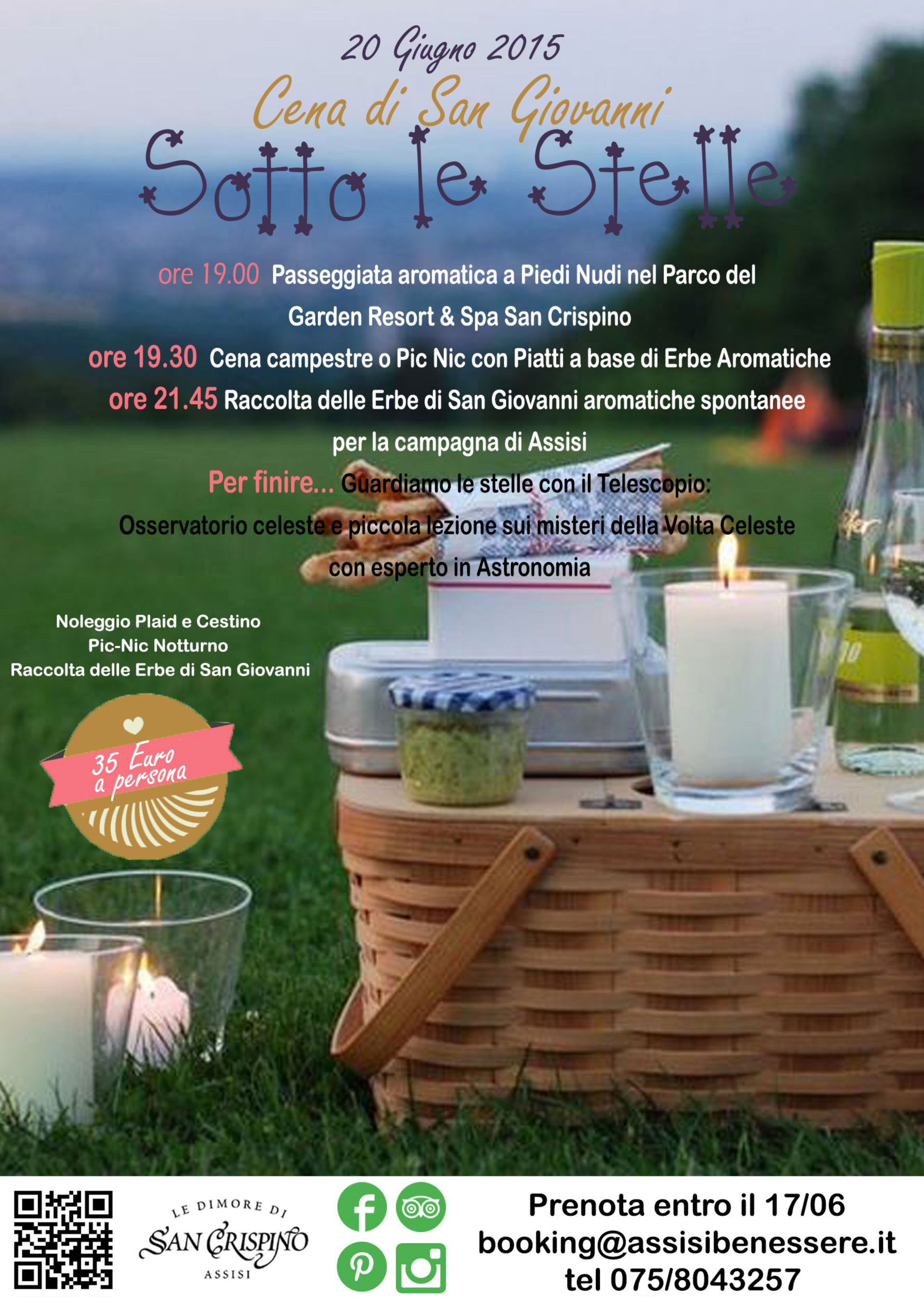 Una serata davvero speciali al San Crispino Garden Resort & spa. Il 20 giugno, appuntamento SOTTO LE STELLE! Con passeggiata e cena a base di erbe aromatiche. Relax & Gusto nel verde! 17/06/2015 Ilda Cecchini Redazione subscriber Previous post Un'altra conferma! Fabio Fanuli completa il reparto dei liberi di Perugia. Next postRimossi gli olivi da Piazza Mazzini Leave A Comment Annulla risposta Salva il mio nome, email e sito web in questo browser per la prossima volta che commento.