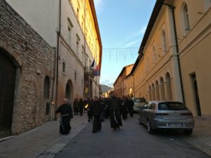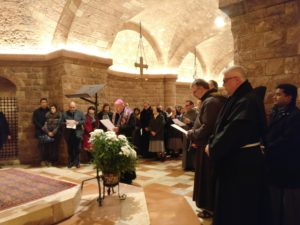 i fronte alla Tomba del Poverello il vescovo ha letto una preghiera da lui scritta in cui si invoca la pace. Al termine monsignor Sorrentino ha ringraziato quanti hanno partecipato ricordando insieme ai presenti il Santo Padre nel giorno del suo compleanno.Assisi, 17 dicembre ’17