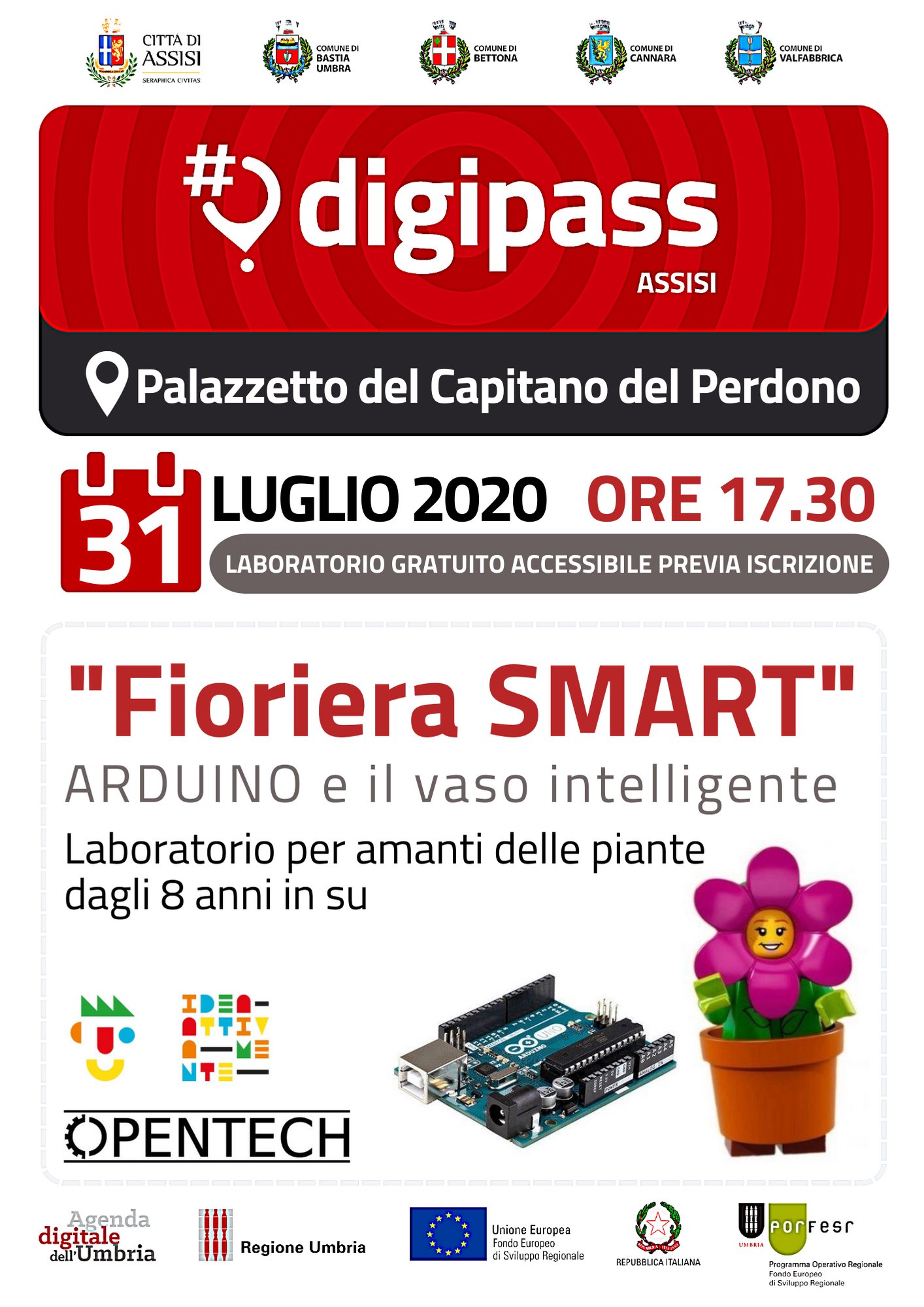 Domani, venerdì 31 luglio, dalle ore 17.30, nella sede del DigiPASS Assisi presso il Palazzetto del Capitano del Perdono, si tiene “Fioriera SMART, ARDUINO e il vaso intelligente”, laboratorio pratico di applicazione di sensori elettronici alle piante in vaso.