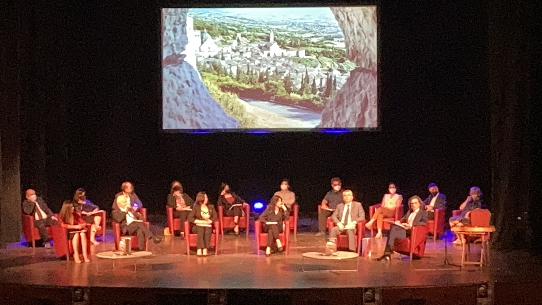 La presentazione del libro “Assisi oltre le mura” ha segnato ieri pomeriggio la riapertura del Teatro Lyrick. Un vero e proprio evento culturale, alla presenza di oltre 200 persone (nel pieno rispetto del distanziamento) e 1000 collegamenti in streaming, che si è svolto tra interventi, letture, immagini e accompagnamenti musicali.
