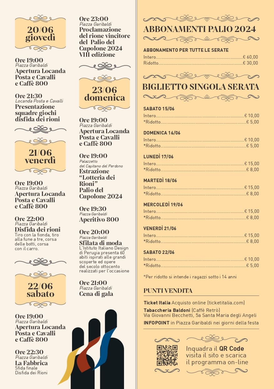 L’Ente Palio ed i Rioni, vi aspettano in Piazza Garibaldi, per gustarvi questo meraviglioso “Festival Rievocativo” (come ama chiamarlo il Direttore Artistico), e come sempre, ci piace ricordarvi, che troverete il programma dettagliato sul sito www.paliodelcupolone.it e sui social FB e Instagram, oltre che nel nutrito gazzettino.