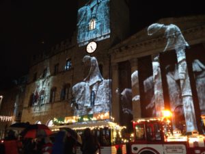 Assisi, 8 dicembre 2017 – Un tripudio di luci, colori, presepi, profumi, ma soprattutto di visitatori. Ad Assisi, da oggi, l’atmosfera delle Feste si respira più che mai. E in maniera emozionale, a partire dall’omaggio alla Natività, che vede protagonisti quasi una ventina di presepi, tra il centro e le frazioni, provenienti da tutto il mondo. Un Natale a misura di grandi e piccoli, intervenuti in tantissimi all’appuntamento di inaugurazione, in cui a farla da padrone sono il coreografico e suggestivo gioco di luci, ottenuto da 40 videoproiettori ed una cabina di regia mai utilizzata fino ad oggi in Umbria, creato dalle istallazioni artistiche proiettate sulle facciate dei palazzi e dei monumenti, e la Casa “teatro” di Babbo Natale al Metastasio.
