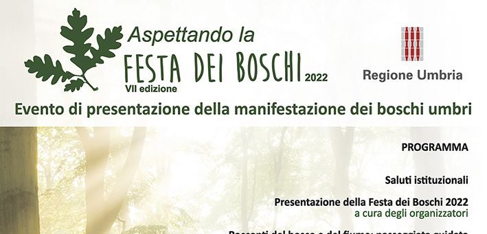 La Festa dei Boschi,  promossa dalla Regione Umbria e organizzata da FAI – Bosco di San Francesco di Assisi, Forabosco di Collestrada con Ecomuseo del Tevere, Fondazione per l’Istruzione Agraria, C.A.M.S. (Centro di Ateneo per i Musei Scientifici), Parco di Colfiorito, Ecomuseo Paesaggio degli Etruschi di Porano, Bosco di Santa Cristina di Gubbio, Bosco di Piegaro e Bosco di Monteluco di Spoleto.