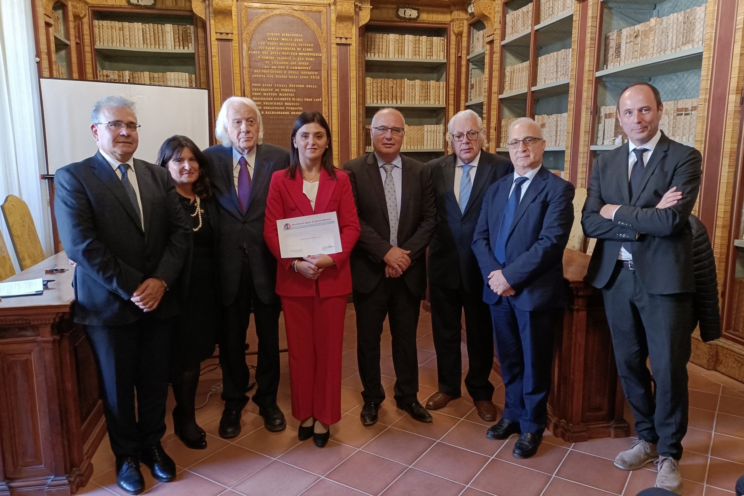 “Con questa iniziativa onoriamo e ricordiamo il dottor Alberto Mezzasoma, storico collaboratore del Rettore Giuseppe Ermini, la cui opera ha lasciato il segno nell’Università degli Studi di Perugia e suoi effetti sono ancora visibili in Ateneo – ha evidenziato il Professor Elisei -. Una manifestazione, quella odierna, estremamente importante che offre un riconoscimento a una giovane laureata della nostra Università che è stata in grado di svolgere un lavoro di valore. Queste occasioni evidenziano la qualità dell’Ateneo di Perugia, basata sull’impegno quotidiano dei nostri docenti, delle nostre studentesse e dei nostri studenti che poi, al momento della tesi, mettono in gioco le loro capacità e la loro creatività che li aiuteranno ad inserirsi in un mondo del lavoro sempre più complesso e che cambia in maniera estremamente rapida, come rimarcato dalla tesi della Dottoressa Segoloni”.