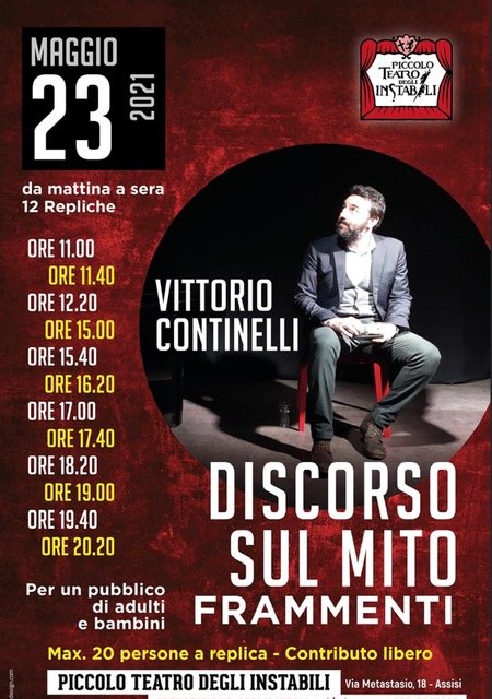 Domenica scorso sono andato a vedere il mini spettacolo ” DISCORSO SUL MITO – FRAMMENTI” al Piccolo Teatro degli Instabili con Vittorio Continelli. Fulvia Angeletti con la passione e l’intelligenza che la contraddistingue ha voluto iniziare la Stagione, sfidando le avverse situazioni, e, per quanto mi risulta, lo spettacolo ha avuto un buon successo di pubblico.Brava Fulvia e vai avanti. Chi ha un sogno deve avere il coraggio di perseguirlo anche se non riesce ad intravvedere la luce in fondo al tunnel.