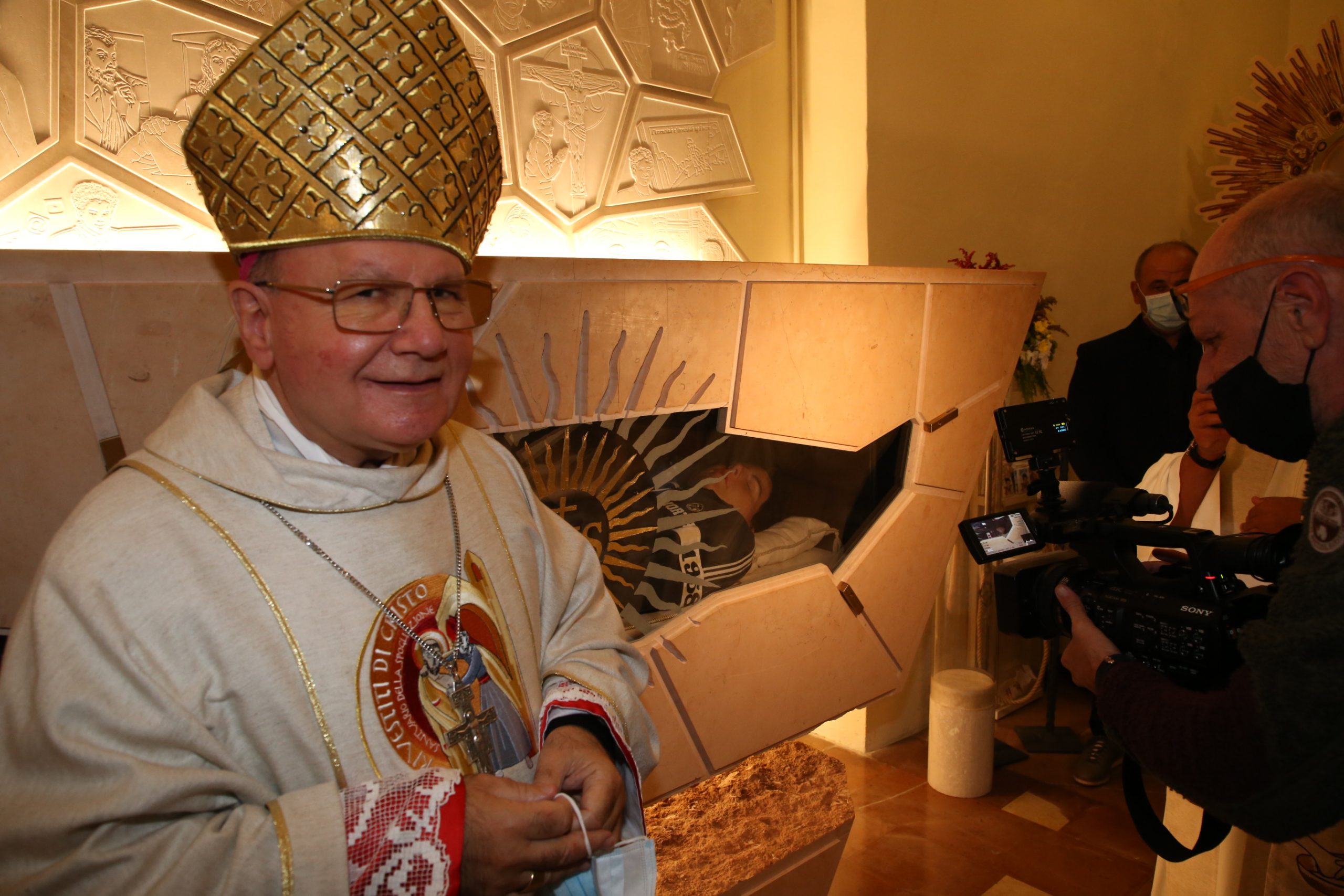 ASSISI – “Apriremo una mensa per i poveri a poca distanza dal Santuario della Spogliazione e ogni anno sosterremo un progetto nei Paesi del Terzo mondo per aiutarli a creare le condizioni per un’economia solidale”. Lo ha annunciato il vescovo della diocesi di Assisi – Nocera Umbra – Gualdo Tadino, monsignor Domenico Sorrentino, al termine della santa messa di giovedì 1 ottobre che ha dato avvio degli eventi collaterali alla Beatificazione di Carlo Acutis, in programma il 10 ottobre alle ore 16,30 nella Basilica di San Francesco. Al termine della celebrazione nel Santuario della Spogliazione, alla quale hanno preso parte anche i genitori di Carlo, il sindaco di Assisi, Stefania Proietti e il vice sindaco Valter Stoppini, è stata aperta la tomba con il corpo del giovane che resterà visibile fino al 17 ottobre.