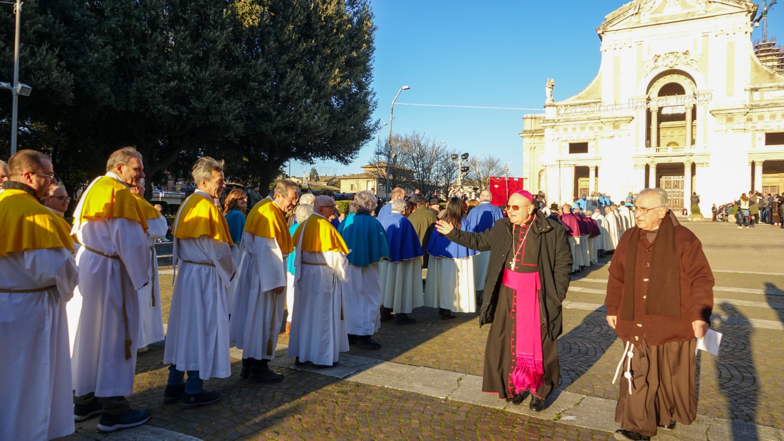 Il custode della Porziuncola, padre Massimo Travascio ha invece sottolineato che il “Giubileo è un tempo per tutti, nessuno escluso, per riscoprire la gioia dell’incontro con il Signore, un tempo per il rinnovamento spirituale, un tempo per impegnarsi nella trasformazione del mondo e portare e seminare speranza ovunque: la speranza del Vangelo, la speranza dell’amore, la speranza del perdono’”. Il Custode ha anche ricordato “le dieci chiese giubilari scelte per i sacri pellegrinaggi, dove riscoprire il senso dell’Anno Santo, avere la possibilità di vivere il sacramento della Riconciliazione e nutrire l’esperienza di fede con la preghiera”. Si tratta della chiesa cattedrale di San Rufino in Assisi; la chiesa concattedrale di Santa Maria Assunta in Nocera Umbra; la chiesa concattedrale di San Benedetto in Gualdo Tadino; la basilica Papale di San Francesco in Assisi; la basilica papale di Santa Maria degli Angeli in Porziuncola in Assisi, il santuario della Spogliazione in Assisi; la chiesa cattedrale di San Feliciano in Foligno; la chiesa di Sant’Agostino – santuario della Madonna del Pianto in Foligno; la chiesa di San Francesco – santuario Sant’Angela da Foligno in Foligno; il santuario della Madonna delle Grazie di Rasiglia in Foligno.