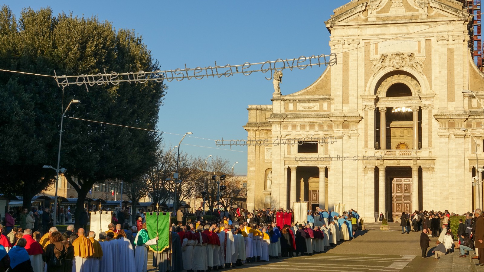 Di questo cammino, per il presule, “Ne era cosciente il giovane Carlo Acutis quando, sotto gli artigli della malattia, offrì la sua vita per la Chiesa, ma aggiunse anche il desiderio di andare subito in paradiso evitando il purgatorio. Era il desiderio di incontrare Gesù così rapidamente da non sopportare alcun ritardo. A questa santità tutti siamo chiamati.  La Chiesa ci offre con il Giubileo una medicina che, se assunta davvero  – cosa non scontata – guarisce le ferite dell’anima   anticipando per noi su questa terra la gioia del paradiso. Quando Francesco per i pellegrini di questa Porziuncola, la annunciò così: ‘Voglio mandarvi tutti in Paradiso’. Tutto è grazia. Ma nel suo gioco paterno di alleanza con i suoi figli – le parole di monsignor Sorrentino – Iddio ci chiede sempre di fare la nostra parte.  Con l’indulgenza giubilare, questa parte è compiuta anche grazie alla comunione che ci lega a tutta la Chiesa, corpo di Cristo. Tocca però a ciascuno aprire il cuore. Non c’è nulla di magico e di automatico. Puoi fare tutti i pellegrinaggi che vuoi, ma se non scatta il pellegrinaggio dell’anima, l’indulgenza non ti può raggiungere. Per accoglierla davvero è richiesta non soltanto qualche pratica esteriore, ma soprattutto il fermo proposito di allontanarci da ogni peccato. In sostanza,  la decisione di vivere santamente. Quest’anno ci chiede più santità, più comunione, più coerenza nella vita cristiana”.
