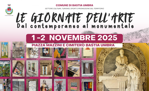Sabato 1 e domenica 2 novembre Bastia Umbra ospiterà “Le Giornate dell’Arte”, un progetto ideato e promosso dall’Assessorato alla Cultura del Comune di Bastia Umbra, che trasformerà per due giorni la città in una vera e propria “Galleria d’Arte a cielo aperto”.