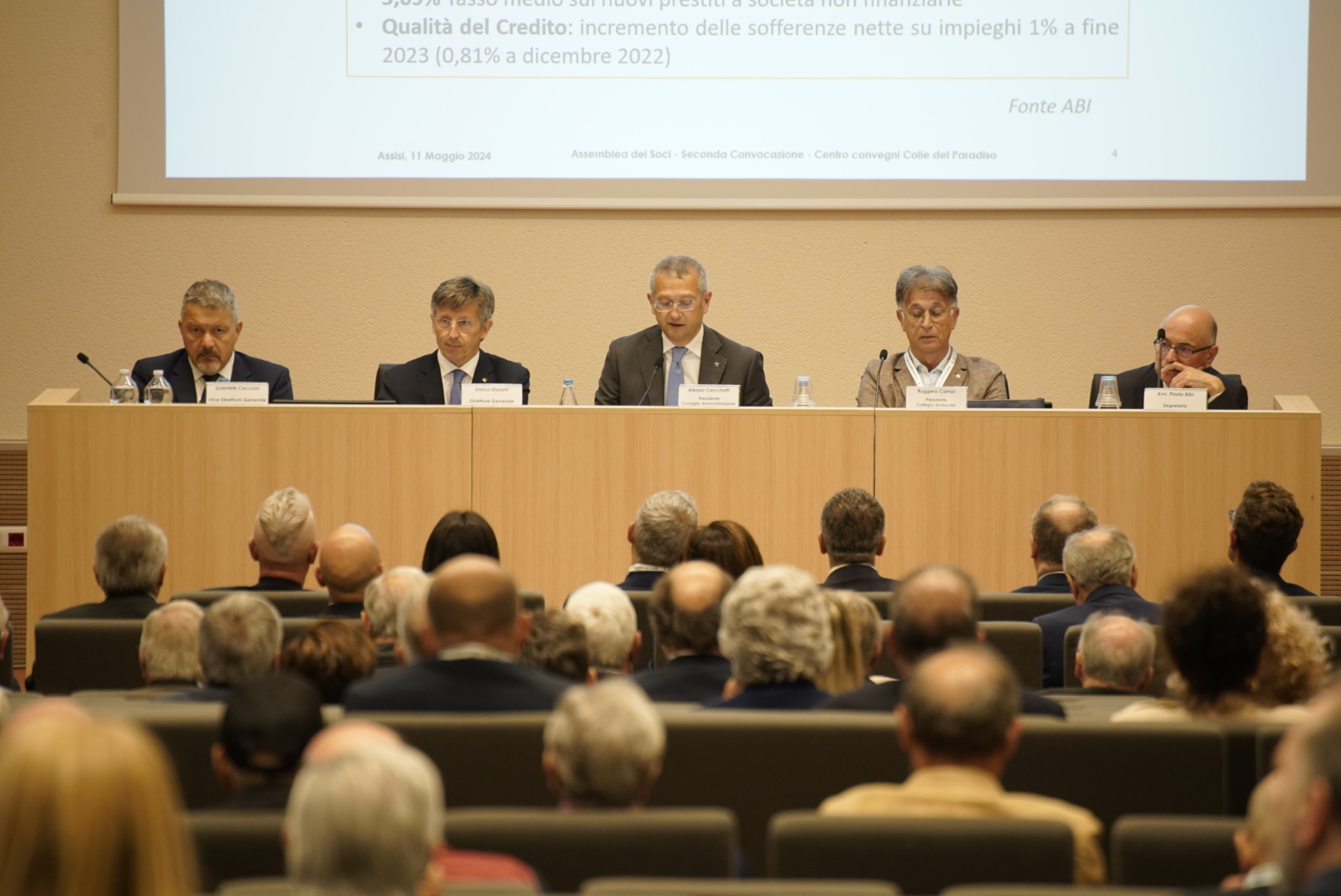 Assisi- Questa mattina l’Assemblea dei soci della BCC di Spello e del Velino ha approvato il bilancio d’esercizio 2023, confermando all’unanimità l’attuale Presidente Alessio Cecchetti e tutto il Consiglio di Amministrazione uscente. L’assemblea si è svolta con una straordinaria partecipazione dei soci presso il centro convegni “Colle del Paradiso” del Sacro Convento di Assisi, location non casuale, ma che simboleggia il legame della Banca con il territorio e con i valori di umanità e solidarietà che il credito cooperativo rappresenta.
