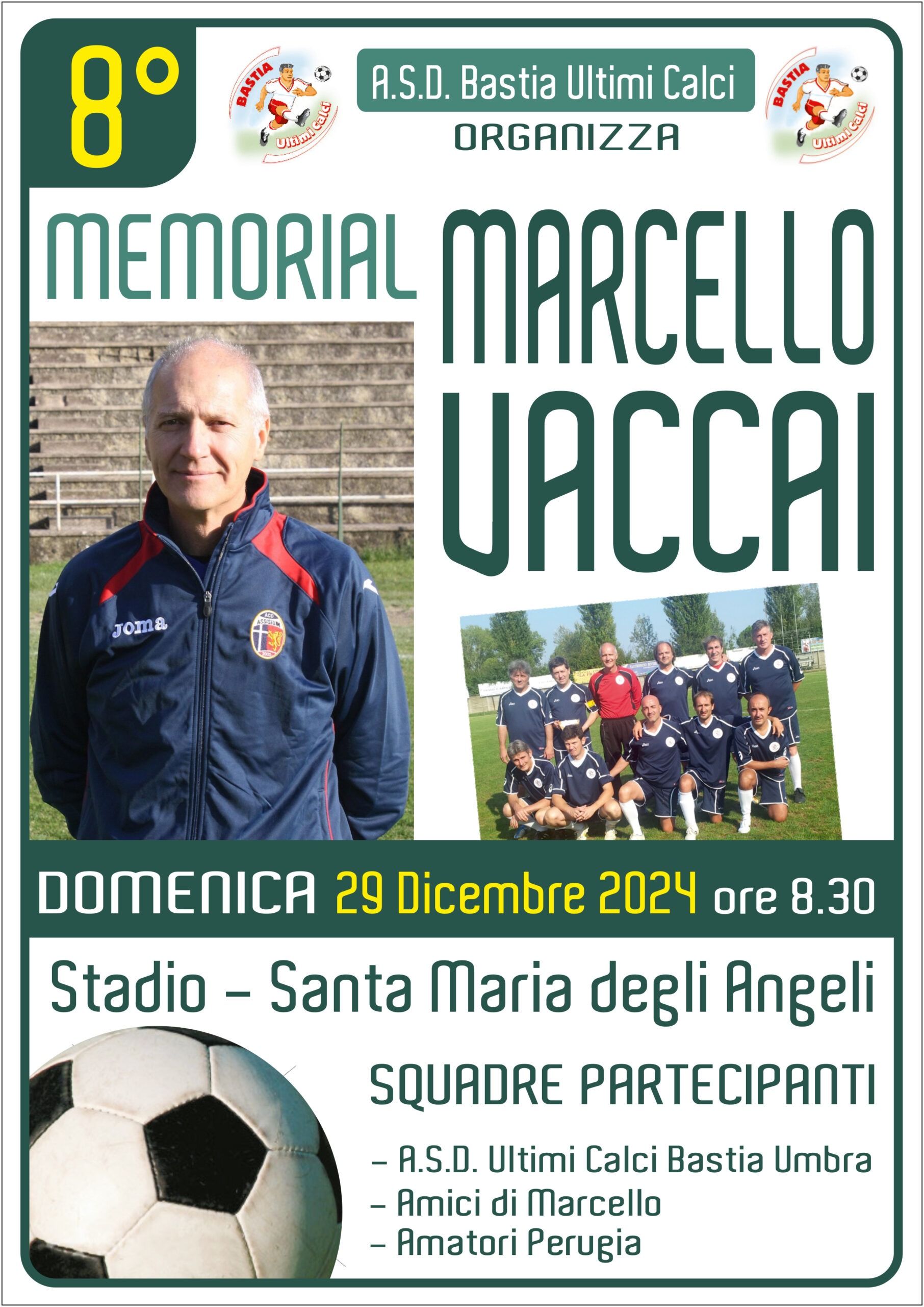 Assisi, 27 dicembre 2024 – Allo stadio Giuseppe Migaghelli, di S. Maria degli Angeli, si svolgerà domenica 30 dicembre, a partire dalle ore 9.00, l’8° Memorial Marcello Vaccai,
