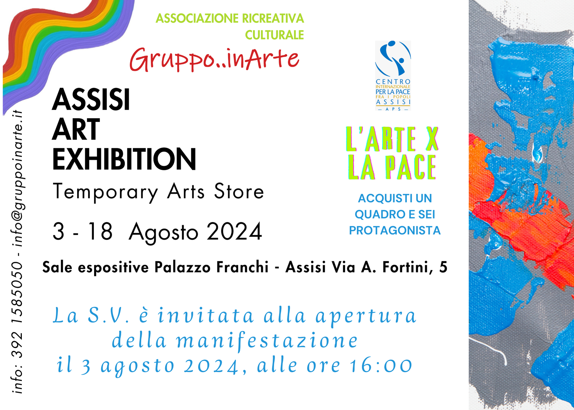 Inizia sabato prossimo 3 agosto Assisi Art Exhibition la seconda edizione della collettiva di arti varie che lo scorso anno ha avuto un grande successo di visitatori e di opere vendute, testimoniato dalla nutrita partecipazione di artisti passati dai 13 dello scorso anno ai 24 di quest’anno.