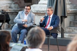 Dopo l’incontro, il ministro è sceso nell’Agorà di Universo Assisi, davanti al Tempio di Minerva, per intrattenersi con il pubblico e parlare delle varie questioni e attività riguardanti il ministero.