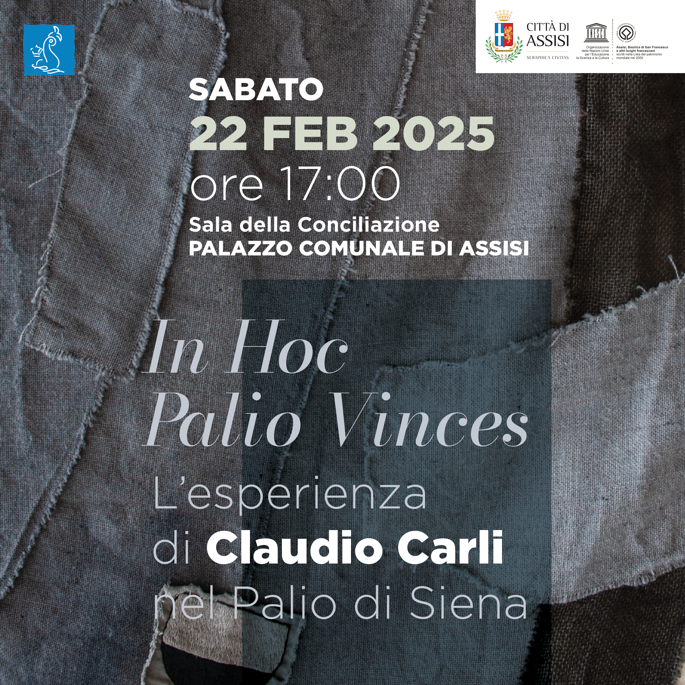 All’evento parteciperà una delegazione della città di Siena, con il presidente del consiglio comunale Davide Ciacci e il priore della Contrada Capitana dell’Onda, Massimo Spessot. Porteranno i saluti Valter Stoppini, sindaco f.f. di Assisi e Stefania Proietti, presidente della Regione Umbria. Seguiranno gli interventi di Ezio Genovesi e Mario Romagnoli, curatori della mostra “Assisi nel ‘900”, allestita in Pinacoteca comunale con diverse opere di Claudio Carli, di Diego Consales, autore del libro “In Hoc Palio Vinces”, di Mario Civai, storico dell’arte, e di Mauro Balani, amico ed estimatore di Carli. Modererà l’iniziativa Paolo Mirti, assessore all’Unesco di Assisi.