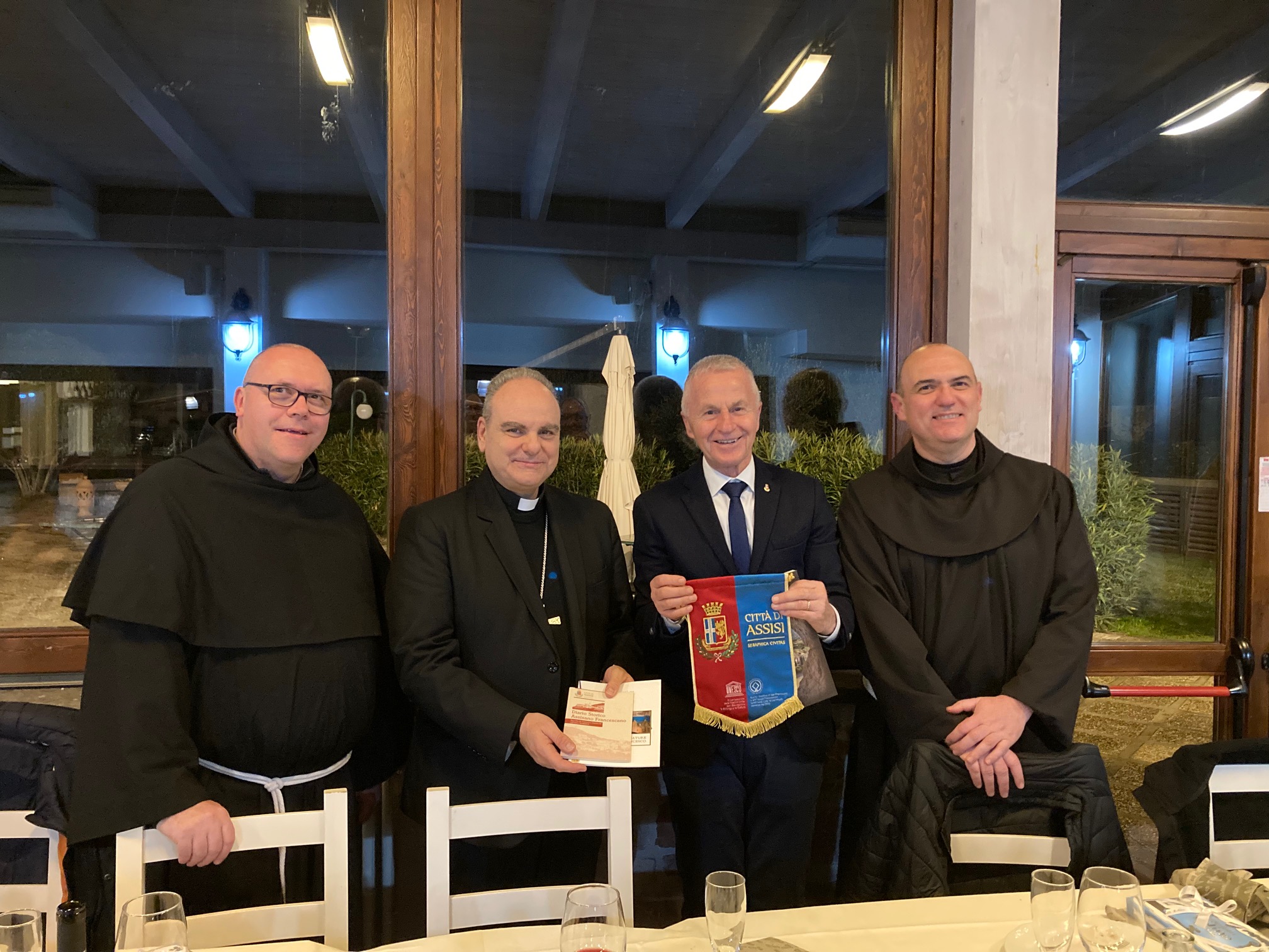 Da parte assisana hanno preso parte al sopralluogo il Custode della Basilica papale di Santa Maria degli Angeli in Porziuncola, fra Massimo Travascio, OFM, il Custode del Sacro Convento di San Francesco in Assisi, fra Marco Moroni, OFMConv, il vicario generale delle diocesi di Assisi – Nocera Umbra – Gualdo Tadino e di Foligno, don Giovanni Zampa, il sindaco di Assisi f.f., Valter Stoppini.