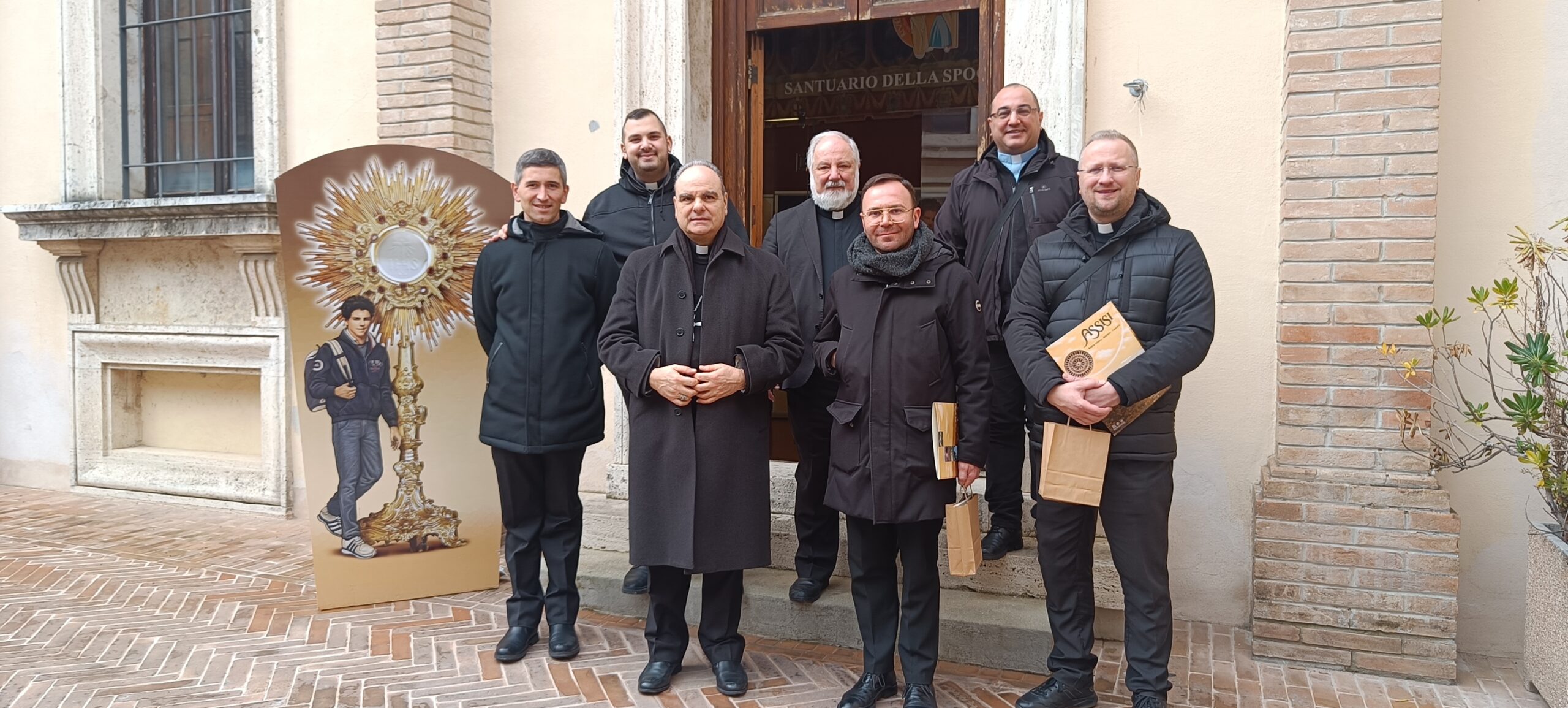 La delegazione, che si è recata in Assisi per i sopralluoghi presso la Basilica papale di Santa Maria degli Angeli in Porziuncola dei frati minori, presso la Basilica di San Francesco in Assisi dei frati minori conventuali, presso il Comune e presso il Santuario della Spogliazione, è stata guidata da S. Ecc.za Mons. Michele Fusco, vescovo di Sulmona-Valva, delegato della Conferenza episcopale Abruzzese-Molisana per l’evento, è stata composta da sacerdoti provenienti da diverse diocesi della Regione