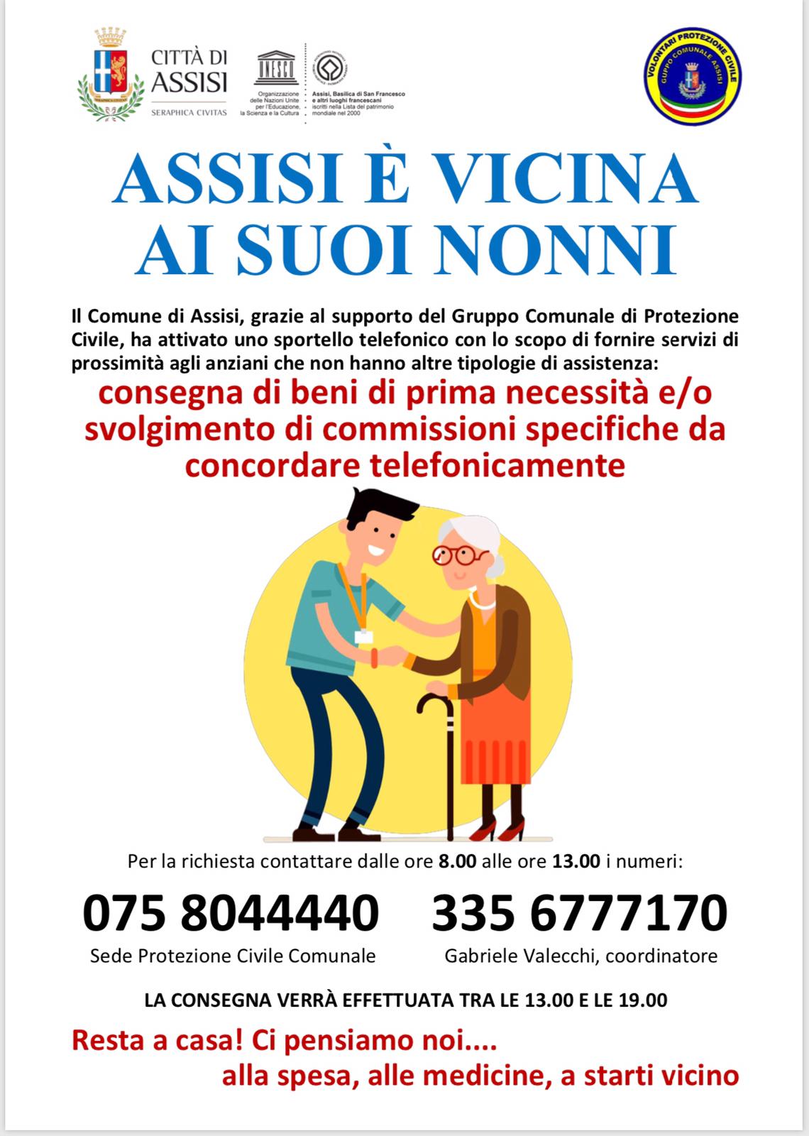Il Comune di Assisi non abbandona i suoi nonni. Non è uno slogan ma la decisione di fare qualcosa di concreto per gli anziani, che non hanno il supporto dei propri cari e sono obbligati, come tutti i cittadini tranne le eccezioni, a restare a casa in seguito alle misure di contenimento della diffusione del coronavirus disposte a livello nazionale.