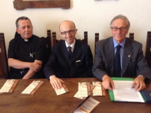 Assisi, 23 agosto 2014: il Sindaco Claudio Ricci, unitamente al Consigliere Franco Brunozzi, ha partecipato in mattinata (presso palazzo capitano del popolo, torre di piazza del Comune) alla presentazione della XXXIV edizione del Palio di San Rufino, in svolgimento dal 23 al 31 Agosto 2014 (foto, oggi).