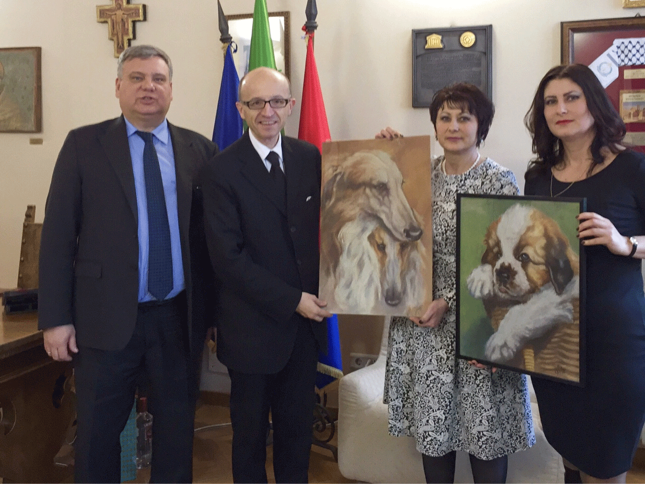 Un incontro importante per consolidare le relazioni culturali, fra città italiane e della Federazione Russa, durante il quale sono state presentate due opere dell’artista Konstantin Shcerbacov le cui arte si ispira a ritratti “filosofici” degli animali con il pensiero rivolto all’armonia e al dialogo francescano con il creato.