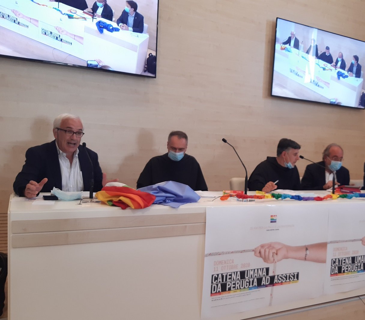 Nella giornata odierna, presso la sala stampa del Sacro Convento di Assisi, è stata illustrata questa particolare edizione alla presenza di Flavio Lotti, Comitato Promotore Marcia PerugiAssisi; p. Mauro Gambetti, Custode del Sacro Convento di San Francesco d’Assisi;p. Enzo Fortunato, Direttore della Sala Stampa del Sacro Convento d’Assisi;Giuseppe Giulietti, Presidente FNSI e fondatore di Articolo21; un consigliere de della Provincia di Perugia; l’assessore ai Lavori Pubblici del Comune di Perugia; l’Assessore alla Pace del Comune di Assisi e un assessore del Comune di Bastia Umbra.