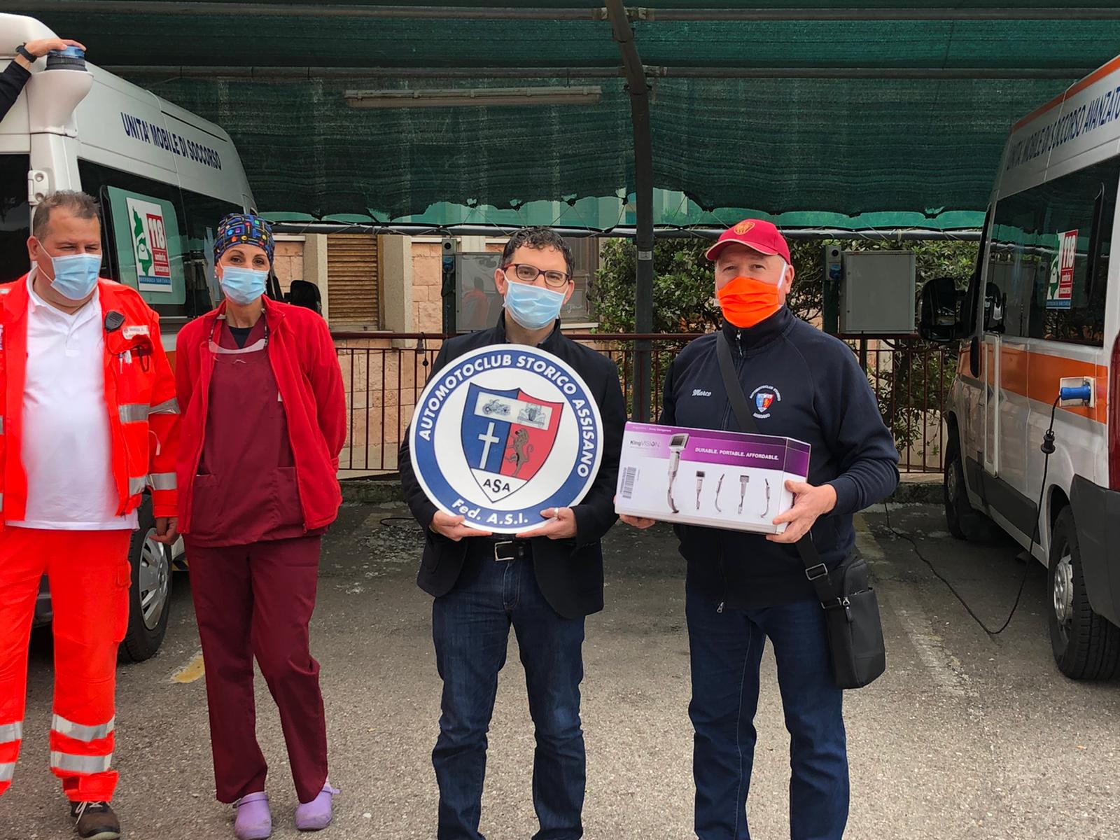 L’Automotoclub Storico Assisano ha donato un Videolaringoscopio portatile per Autoambulanze all’USL Umbria 1 a favore dell’Ospedale di Assisi, Pronto Soccorso. A consegnare il prezioso macchinario nelle mani del Dottor Manuel Monti Primario di medicina interna all’ospedale di Assisi è stato Marco Capomaccio Presidente dell’ASA. Il Videolaringoscopio è uno strumento utile nel momento dell’intubazione del paziente in quanto permette una visualizzazione migliorata della struttura della glottide e riduce al minimo la necessità di manipolare i tessuti nel momento dell’intubazione. “Con orgoglio consegno questo strumento essenziale per la gestione dell’emergenza Covid19 – ha detto Marco Capomaccio – a nome di tutto il club. Da 30 anni lavoriamo nel territorio assisano, e con le nostre auto storiche, abbiamo percorso ogni angolo della nostra bella regione. L’emergenza ci ha fatto rinunciare alla nostra manifestazione di punta, “Sentieri Francescani”, che ogni anno portava oltre 80 equipaggi sulle vie del Poverello creando un importante movimento turistico utile al territorio”.