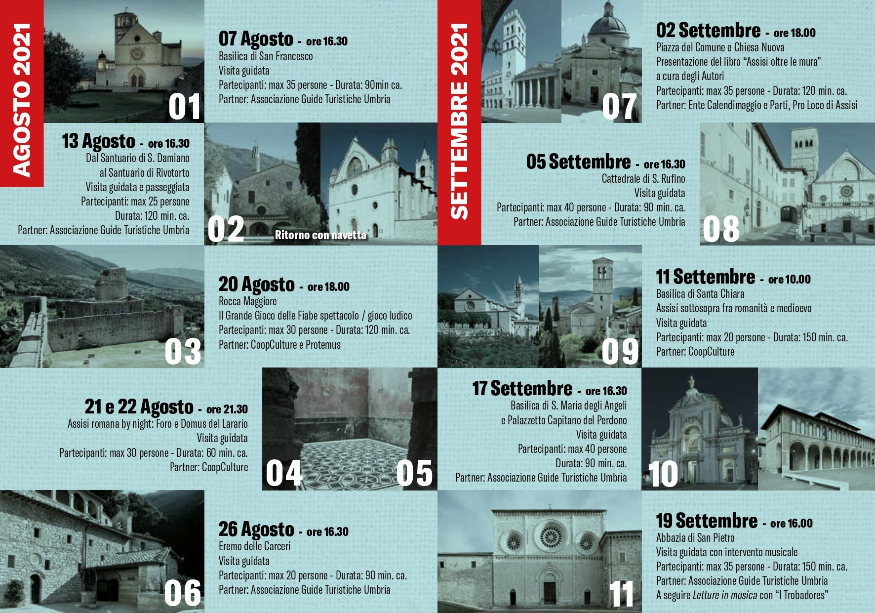 Gli incontri, a cura dell’Associazione guide turistiche dell’Umbria e CoopCulture con il coordinamento dell’ufficio comunale del turismo, puntano a far conoscere da vicino il patrimonio assisiate Unesco e sensibilizzare sull’importanza della storia e dell’arte di Assisi anche attraverso interventi di intrattenimento, animazione e momenti musicali.