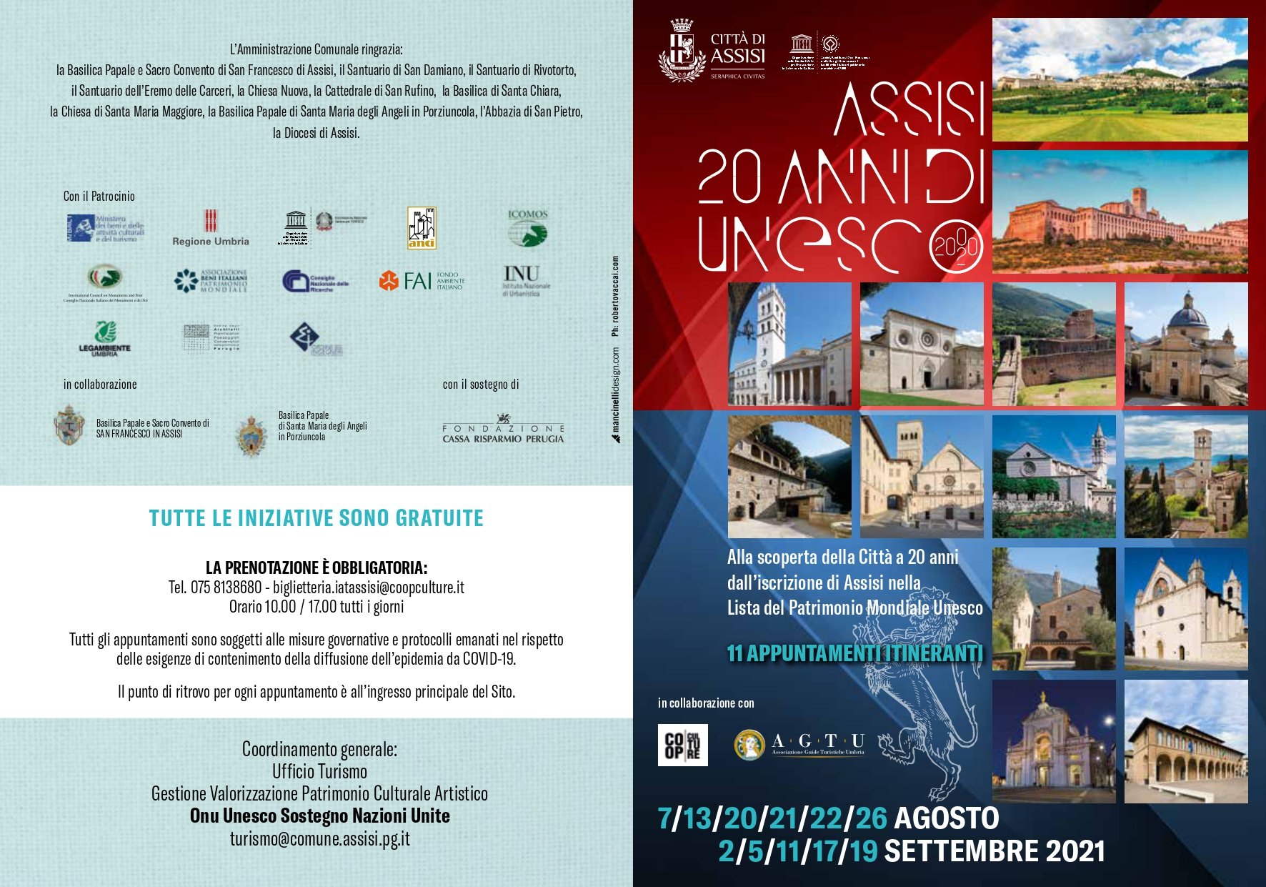 Alla scoperta dei luoghi simbolo della cultura e dell’arte di Assisi. E’ questo il leit motiv del calendario degli appuntamenti organizzati per celebrare i 20 anni di iscrizione della Città Serafica, della Basilica di San Francesco e altri siti francescani nella lista del Patrimonio Mondiale dell’Unesco.