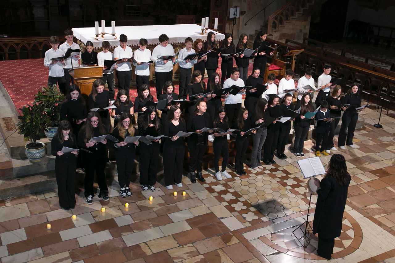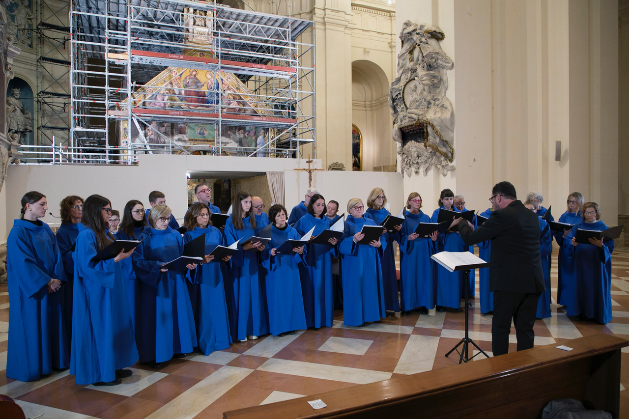 Assisi Pax Mundi 2024 si è aperta il 17 sera nella Basilica Inferiore di S. Francesco con l’Ensemble Angelica Biltà di Assisi e il Coro di voci bianche “Cor Gentile” della Scuola secondaria di I grado Gentile da Foligno. Venerdì 18 nella Cattedrale di San Rufino si sono esibiti il Coro Santuario del Sacro Tugurio (PG) e il Coro Laudate Dominum (NA), mentre nella Basilica di Santa Maria degli Angeli è toccato alla Corale San Prospero (RE) e al Coro De Iddanoa (Monteleone SS). Sabato 19 nella Chiesa di San Pietro è stata la volta del Coro Regina Pacis (FR) e del Coro Polifonico Cantabo Gaudium (Roma), mentre a sera nella Basilica Superiore di San Francesco il concerto di chiusura con la partecipazione di tutti i gruppi corali. Domenica mattina nella Basilica Superiore di San Francesco, il gran finale la celebrazione animata da tutti i gruppi corali chiusasi con l’esecuzione del Cantico delle Creature di p. Domenico Stella. Non è mancato un momento emozionante comune, con la visita guidata dei cori alla Biblioteca e al Fondo musicale della Cappella Musicale di San Francesco: i partecipanti, sotto la guida di fr. Peter Hrdy, direttore della Cappella Musicale, hanno potuto ammirare i manoscritti e i codici tra cui il 338 (Cantico delle Creature) e il Cantorino di Reims.