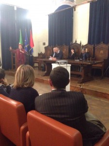 Foto: della platea e del sindaco Proietti, del vicesindaco Stoppini, dell’assessore Guarducci e del direttore Rossetti, dall’incontro di ieri