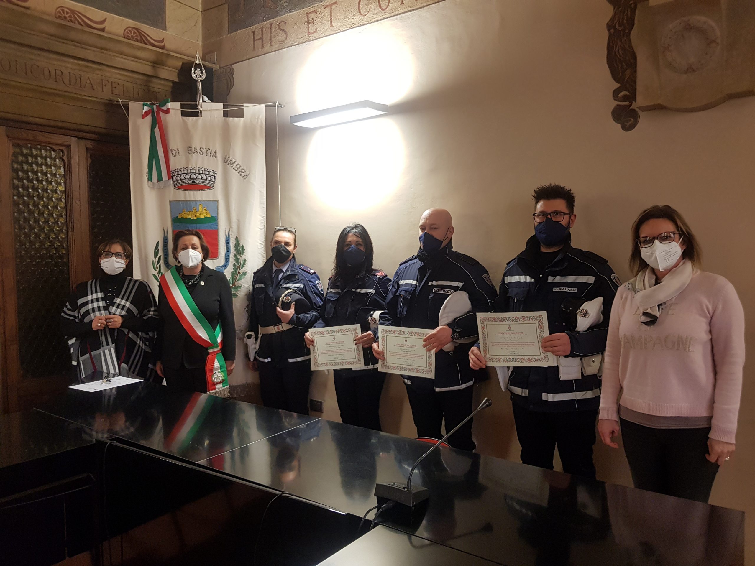 In esecuzione della Delibera di Giunta n. 18 del 26 Gennaio 2021 e’ stato rilasciato in data odierna un attestato di Encomio Solenne all’Appuntato Ombretta Lucarelli e agli Agenti di Polizia Locale Nicola Cuppoloni e Marco Montanucci meritevoli Per la rilevanza dell’operazione portata a termine, la capacità professionale dimostrata, le doti umane ed operative espresse e l’alto senso del dovere con cui hanno dato prestigio all’ Amministrazione Comunale di Bastia Umbra e a tutto il Corpo di Polizia Locale, come si evince dal testo della Delibera sopra citata.