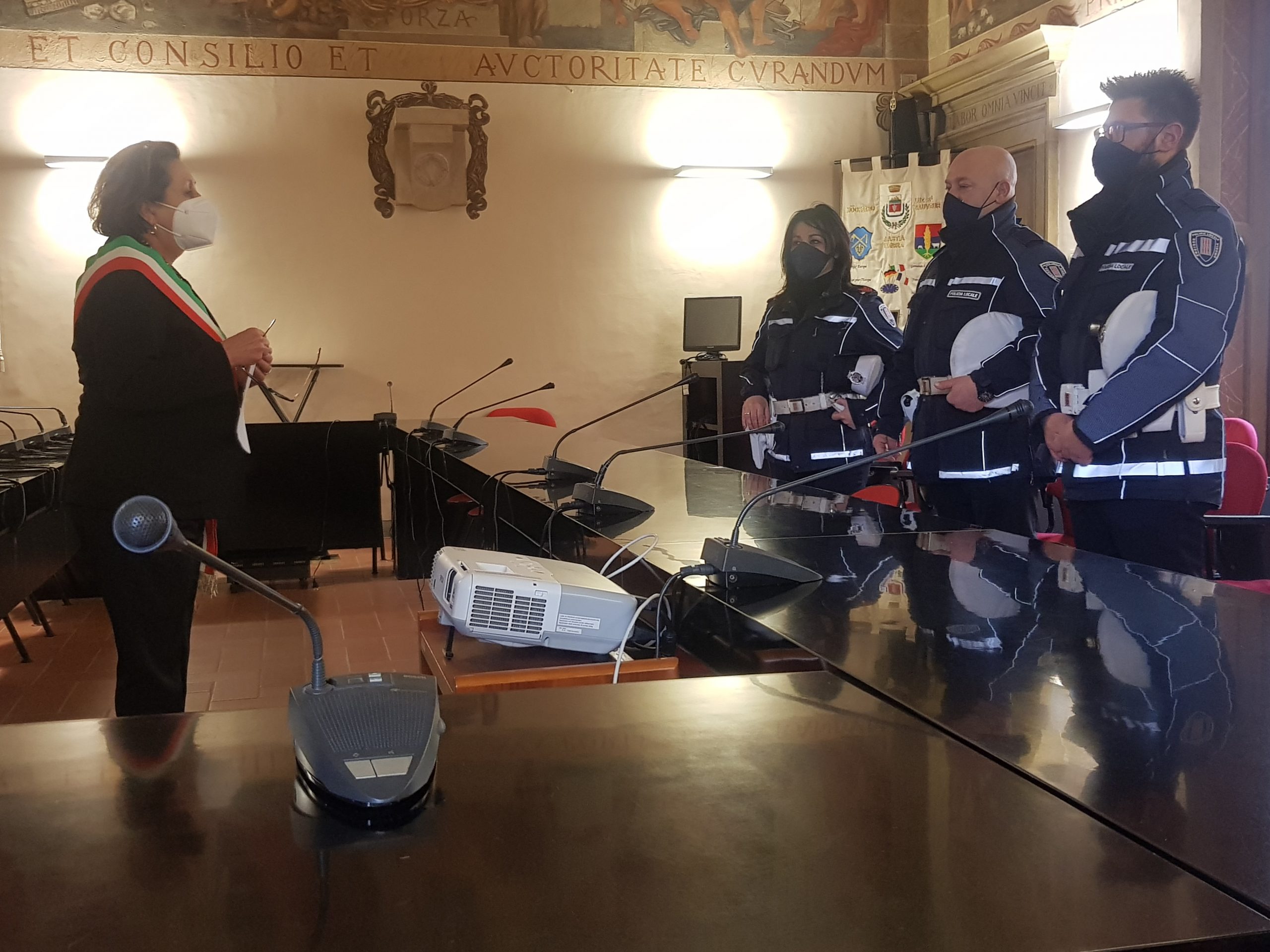 In esecuzione della Delibera di Giunta n. 18 del 26 Gennaio 2021 e’ stato rilasciato in data odierna un attestato di Encomio Solenne all’Appuntato Ombretta Lucarelli e agli Agenti di Polizia Locale Nicola Cuppoloni e Marco Montanucci meritevoli Per la rilevanza dell’operazione portata a termine, la capacità professionale dimostrata, le doti umane ed operative espresse e l’alto senso del dovere con cui hanno dato prestigio all’ Amministrazione Comunale di Bastia Umbra e a tutto il Corpo di Polizia Locale, come si evince dal testo della Delibera sopra citata.