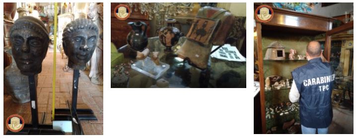 Nel giugno 2020 nelle località liguri di Rapallo, Camogli e Genova, militari del Nucleo di Perugia unitamente ai colleghi del TPC genovese, a conclusione di una articolata attività d’indagine avviata attraverso il monitoraggio dei canali di vendita telematici, operavano il sequestro di 159 reperti archeologici, fra i quali ceramiche etrusche, oggettistica varie e statuaria in bronzo e pietra di epoca pre-romana e pre-colombiana, provenienti da aree archeologiche del centro Italia e del Sudamerica. Nel corso delle perquisizioni operate presso un esercizio commerciale di settore ed altre private pertinenze sempre riconducibili al titolare dell’attività, venivano ulteriormente individuati e sequestrati altri 21 reperti archeologici (ceramiche apule, etrusche, statue in terracotta policroma e anfore vinarie), costituenti una privata collezione. Il valore complessivamente attribuito ai manufatti illecitamente detenuti è stato quantificato in 150.000 euro. L’indagine ha portato alla denuncia di due persone per ricettazione in concorso.
