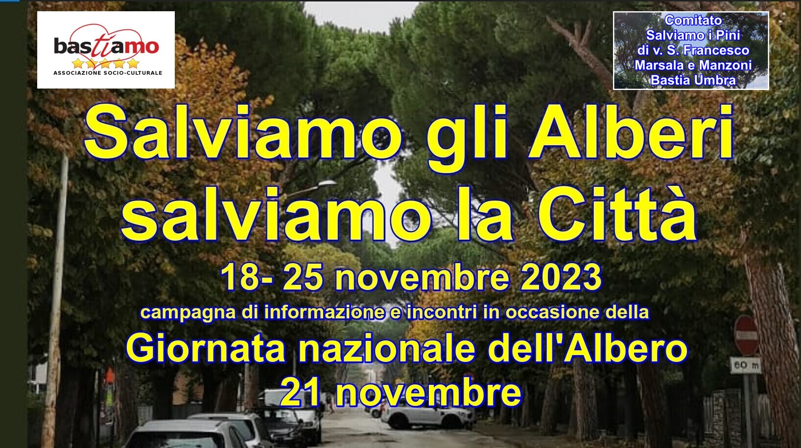 – Dal 21 al 25 novembre campagna di sensibilizzazione e gazebo per la Giornata Nazionale dell’Albero. A cura dell’associazione Bastiamo e del Comitato Salviamo i Pini di v. S. Francesco. Dal 21 al 25 novembre campagna di sensibilizzazione e gazebo per la Giornata Nazionale dell’Albero. A cura dell’associazione Bastiamo e del Comitato Salviamo i Pini di v. S. Francesco. …