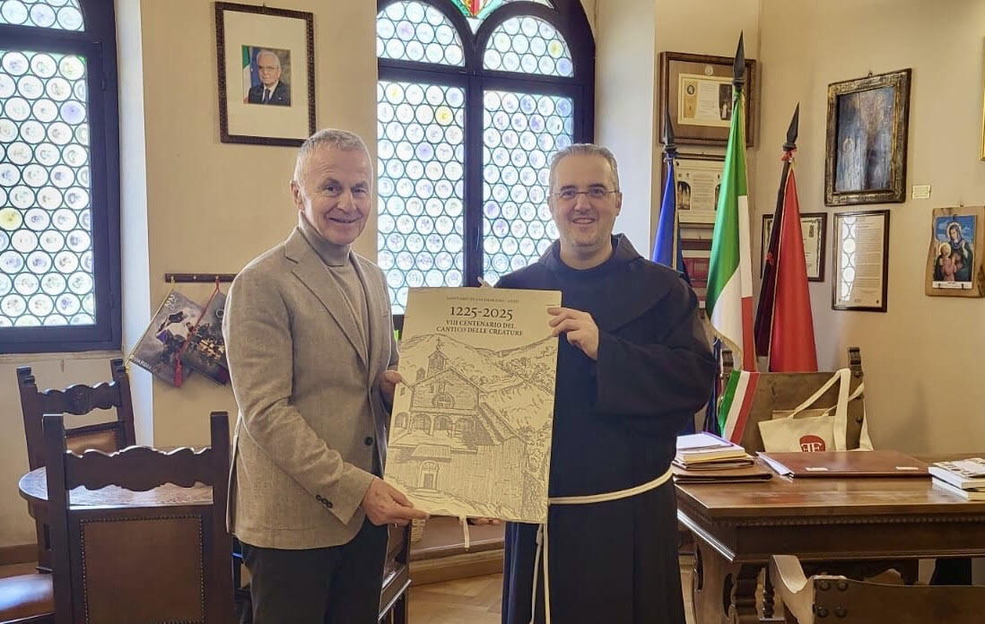 COMUNICATO STAMPA Il guardiano di San Damiano ha consegnato in anteprima al vicesindaco nove immagini che nel 2025 saranno in mostra nel santuario 800 ANNI CANTICO DELLE CREATURE, STAMPE CELEBRATIVE IN DONO AL COMUNE ASSISI,17 gennaio 2025 – Stampe celebrative del Cantico delle Creature, realizzate da artisti umbri in occasione dell’ottavo centenario, sono state donate al Comune di Assisi …