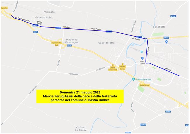 “Marcia per la Pace Perugia-Assisi ” Domenica 21 Maggio 2023. Le modifiche alla viabilità a Bastia Umbra.