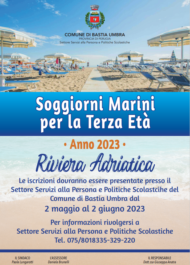 Soggiorni marini per la terza età anno 2023 organizzati dal Comune di Bastia Umbra. Iscrizioni dal 2 maggio al 2 giugno.