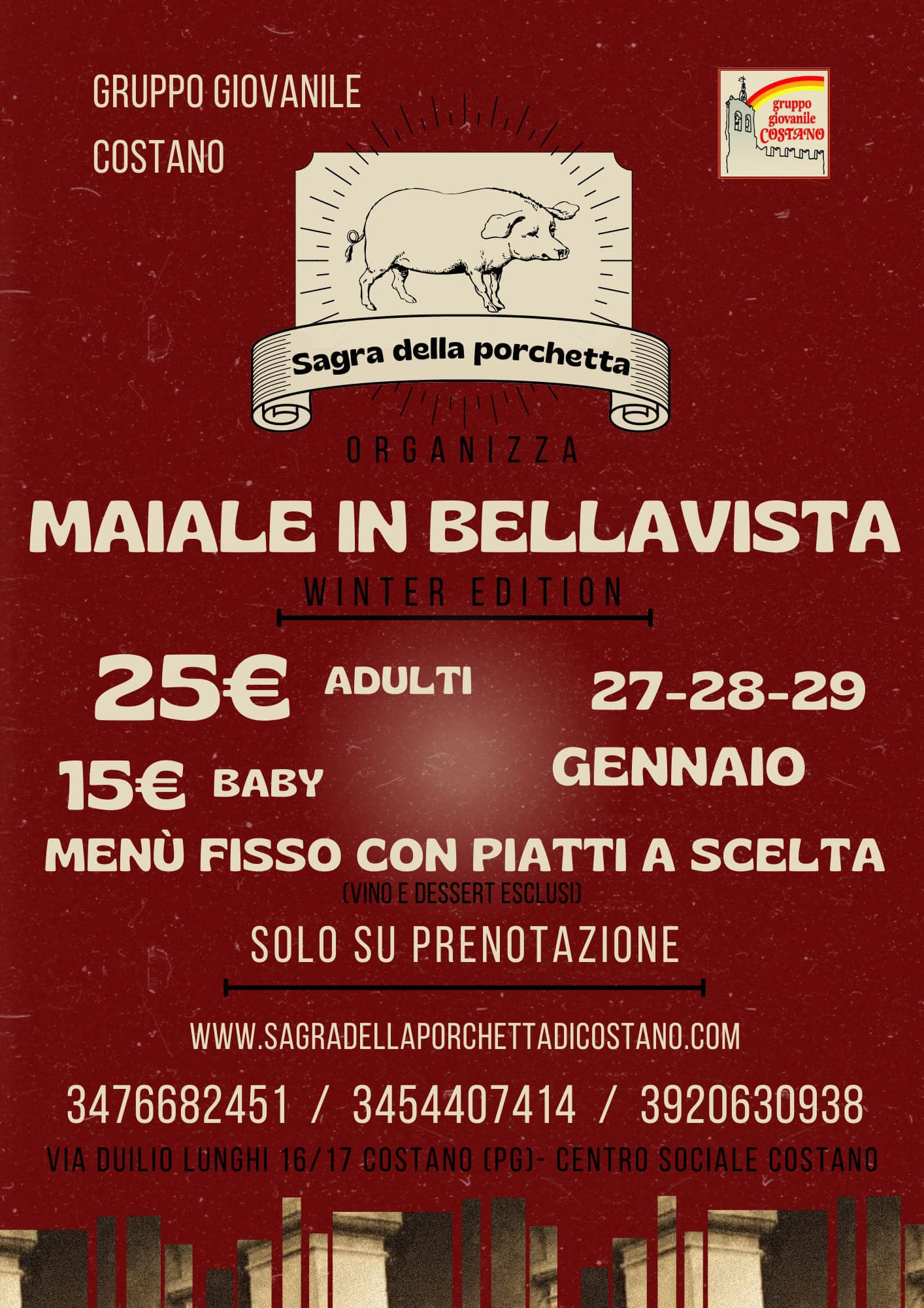 “Maiale in Bellavista” è l’edizione winter della Sagra della Porchetta di Costano.