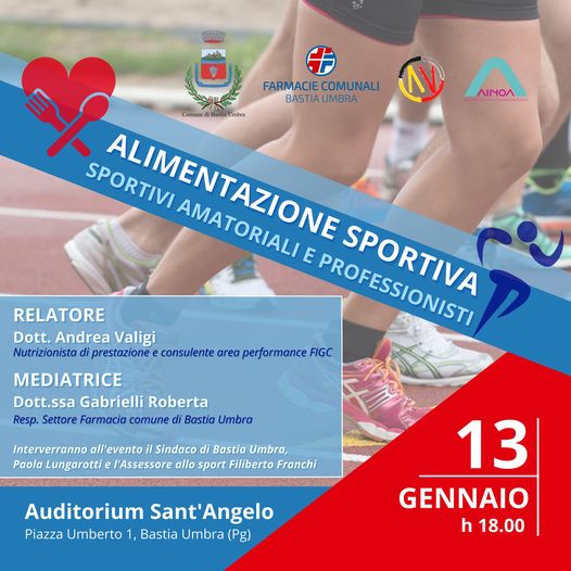 Incontro dedicato alla nutrizione sportiva venerdì 13 gennaio ore 18.00 all’Auditorium Sant’Angelo di Bastia Umbra.