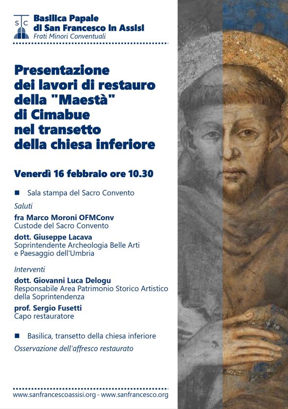 Venerdì 16 febbraio alle 10.30 presso la Sala Stampa del Sacro Convento e in chiesa inferiore