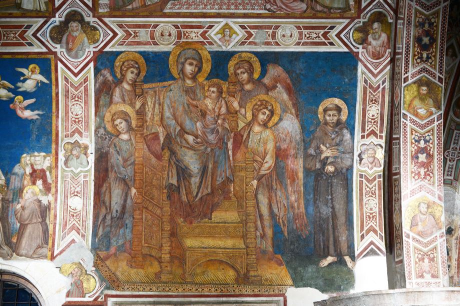 Databile tra il 1285 e il 1290 – la prima realizzata da Cimabue all’interno della Basilica -, l’opera è situata nella parte destra del transetto settentrionale della chiesa inferiore della Basilica di San Francesco. L’affresco è celebre non solo per la raffigurazione della Vergine in trono, ma anche per quello che si ritiene essere uno dei ritratti più antichi e affidabili di san Francesco stesso, realizzato, secondo la tradizione, sulla base delle indicazioni di chi lo aveva conosciuto personalmente.