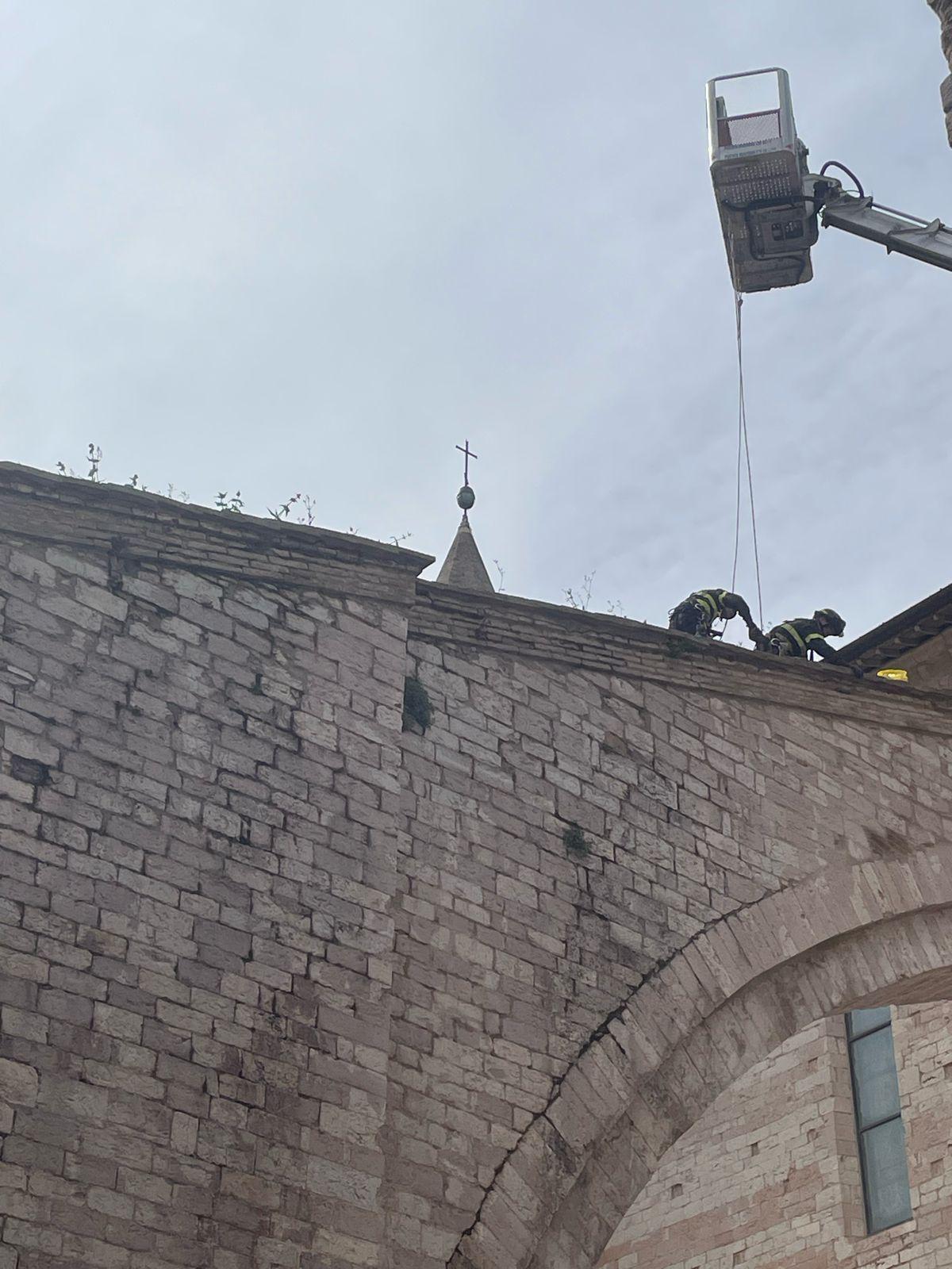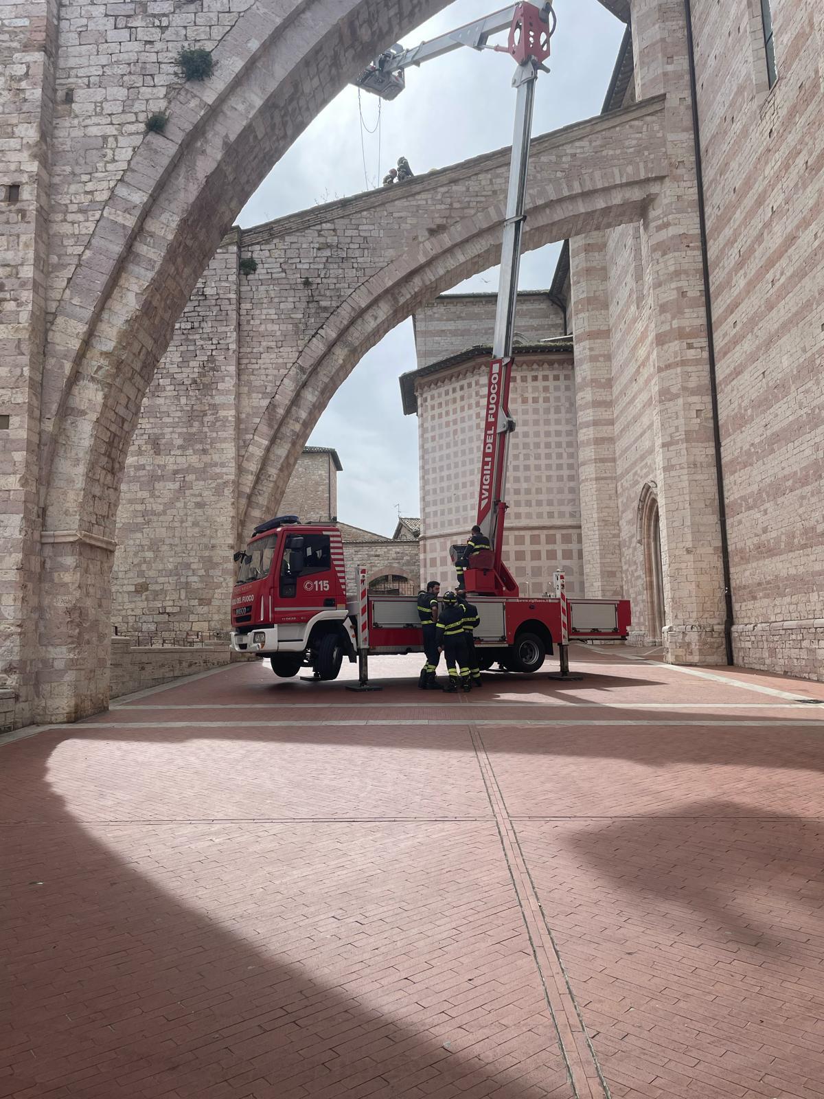 BASILICA DI SANTA CHIARA SOPRALLUOGO DEI TECNICI DEL COMUNE E DEI VIGILI DEL FUOCO. NESSUNA CRITICITÀ STRUTTURALE.