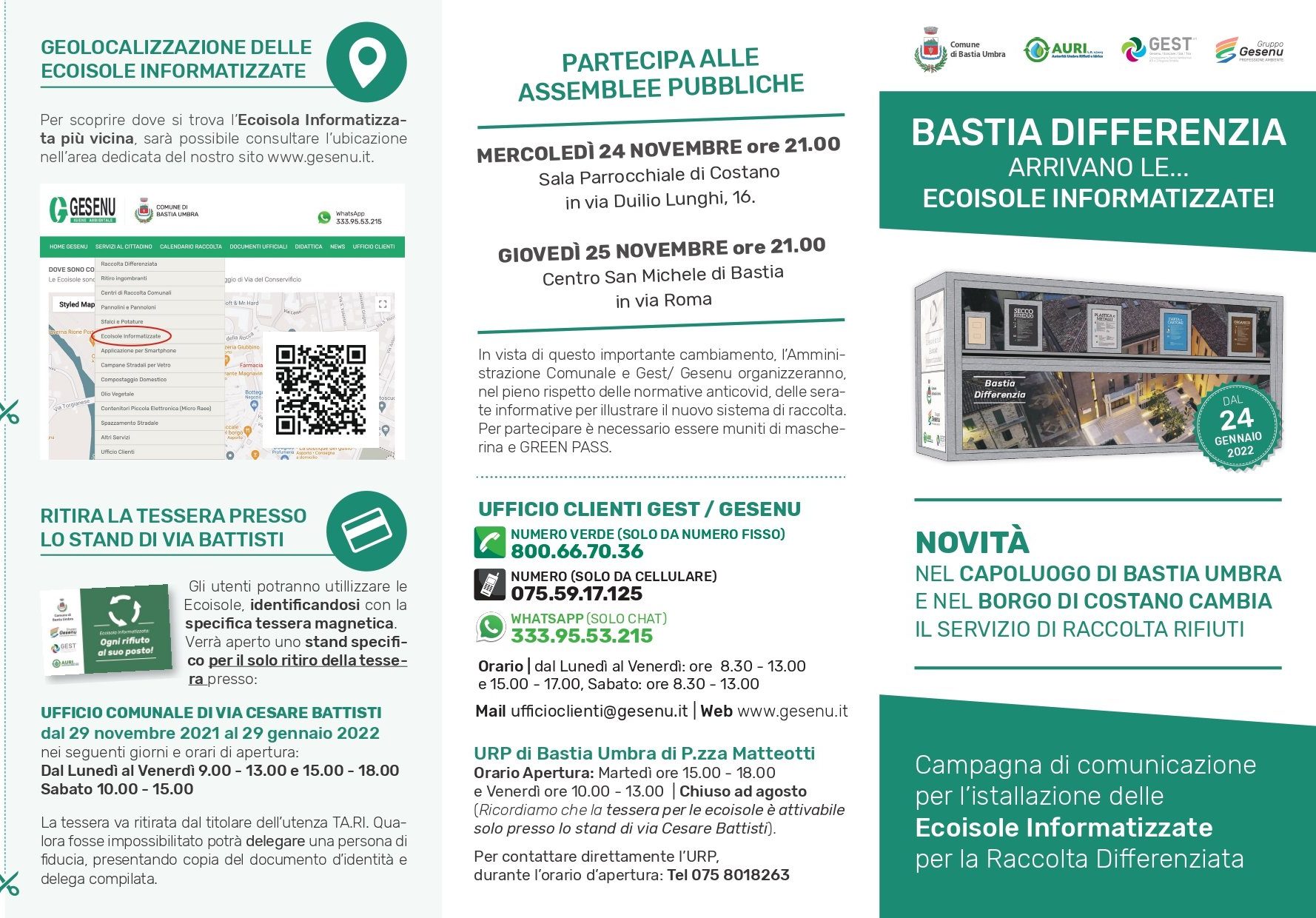 Il nuovo sistema di conferimento dei rifiuti mediante Ecoisole informatizzate sostituirà l’attuale servizio di raccolta differenziata domiciliare con mastelli e contenitori ed interesserà le utenze domestiche e non domestiche di Bastia Umbra e di Costano.