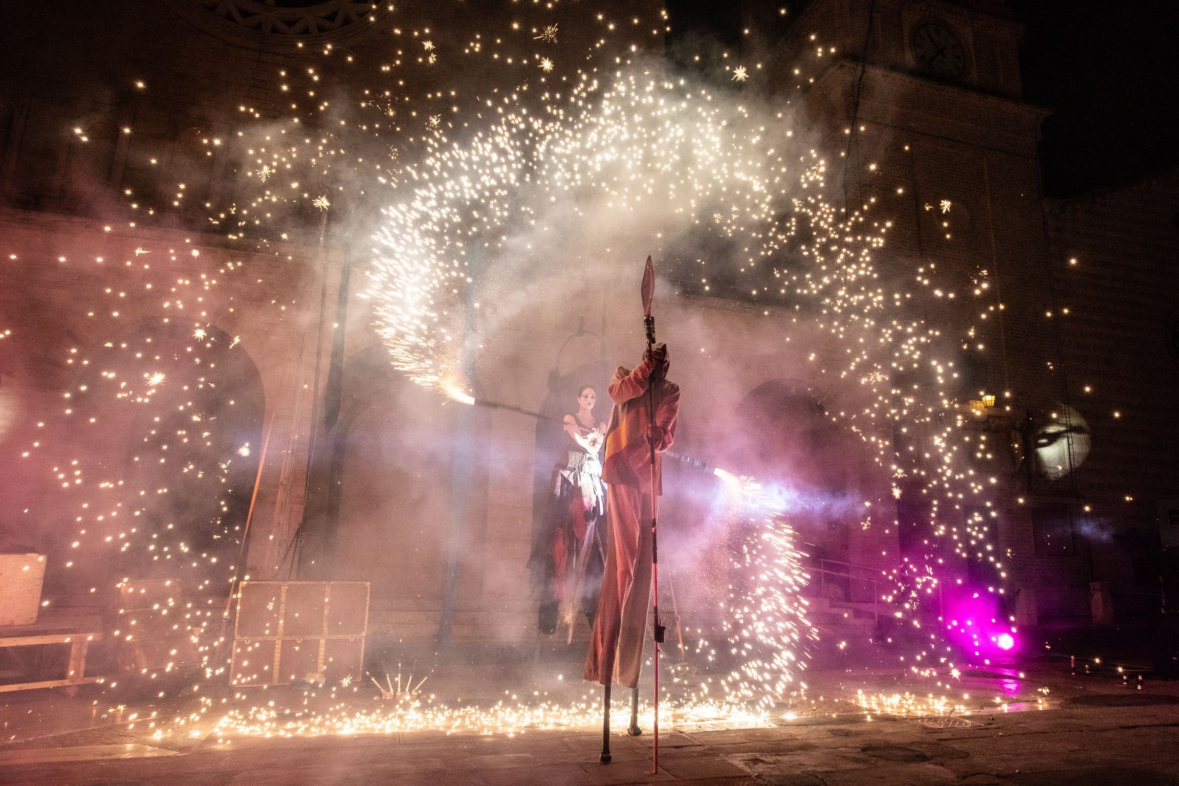 The Tempest è un grande spettacolo di piazza con trampoli, fuoco, effetti di luce e pirotecnica, liberamente tratto dall’opera di Shakespeare.